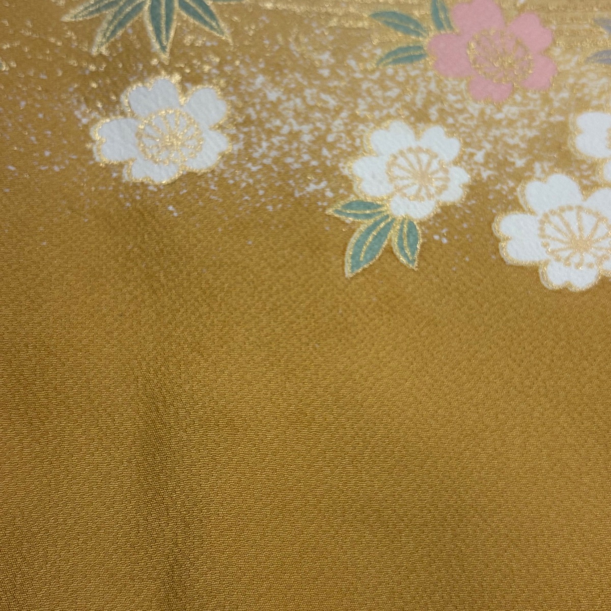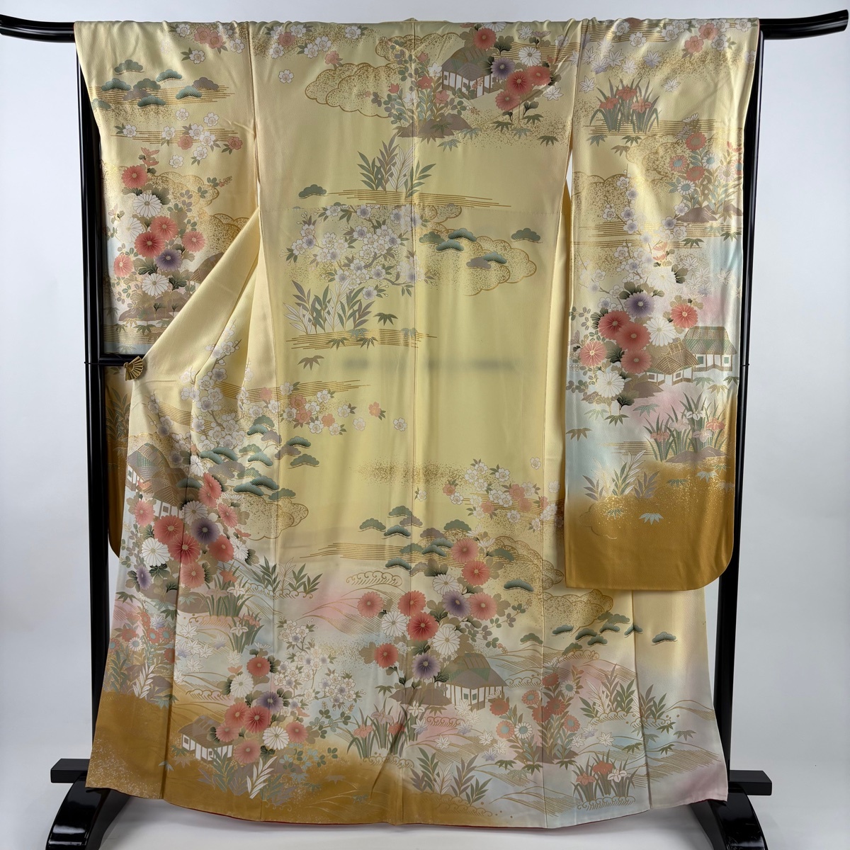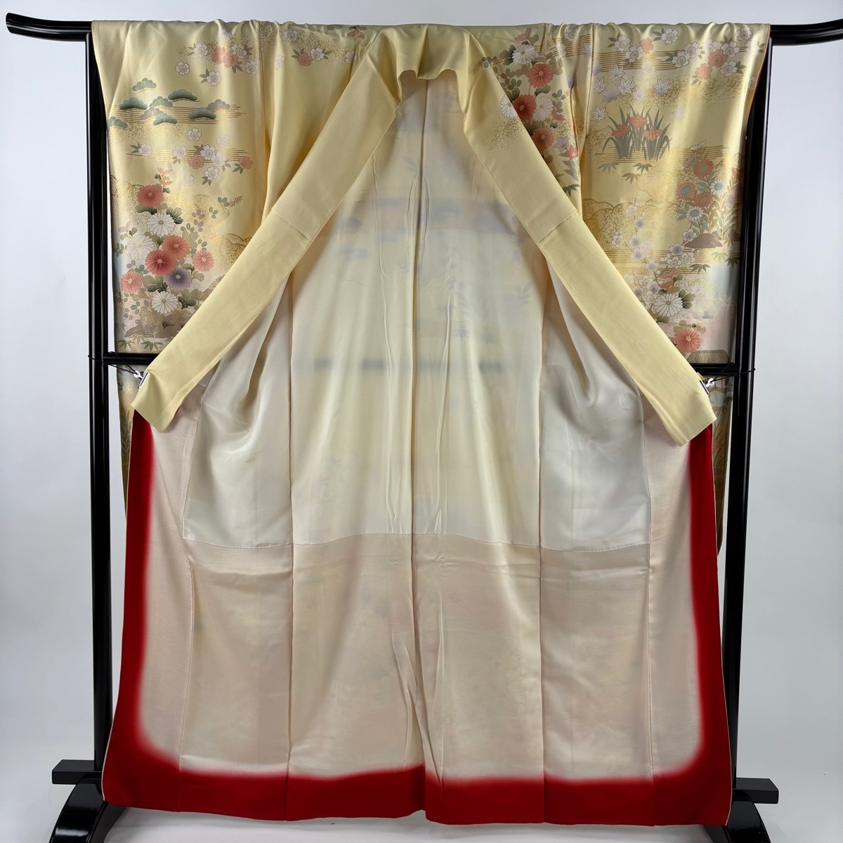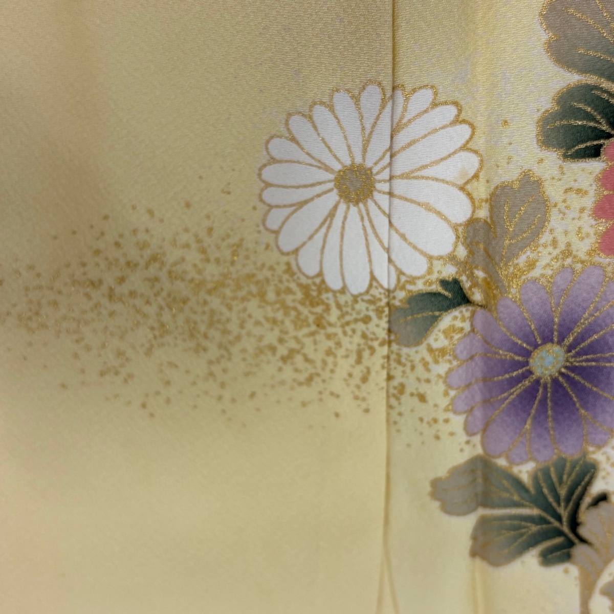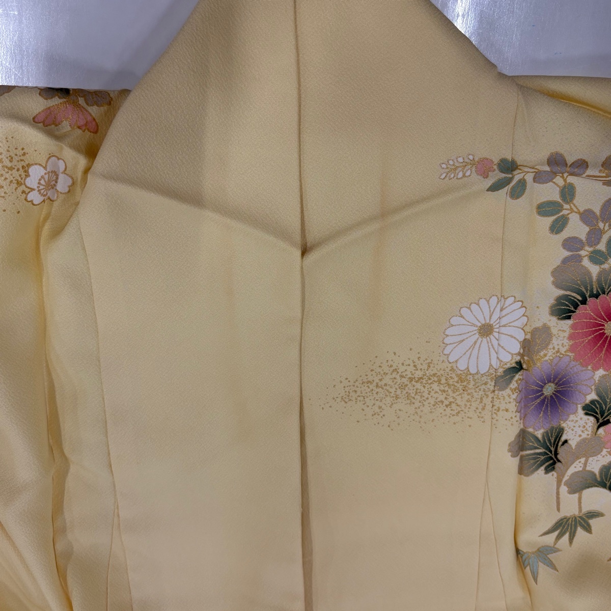 | 振袖 名品 松竹梅 菊 金彩 染め分け 薄黄 袷 身丈164 裄丈67 M 正絹 【中古】 |