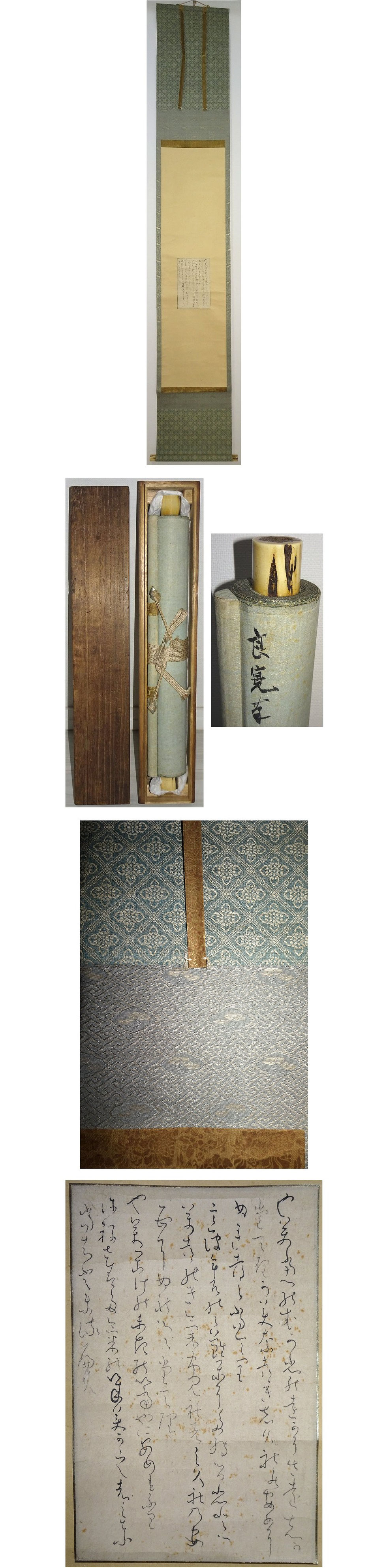 紙本 春日軸 真筆保証(真作) 金襴三段表装風帯つき(一文字風帯印金襴) ウブ幅 桐箱入 中身寸法23.5×15 薄い倉ジミ等少しあり 幅自体しっかりしています よろしくお願い致します