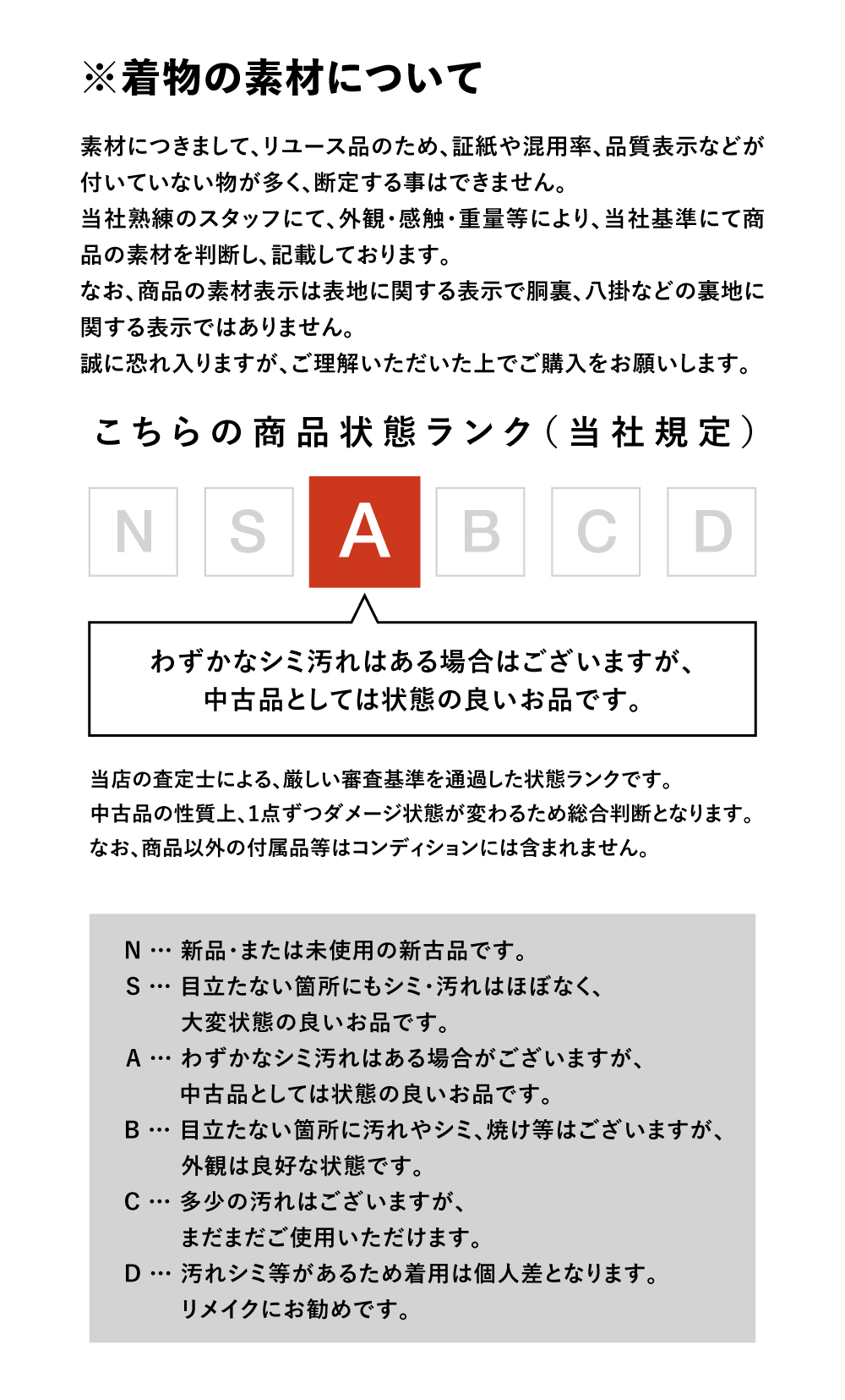 | 着物参考サイズ 採寸について | 着物商品 ランクについて | 着物状態 ランクについて |