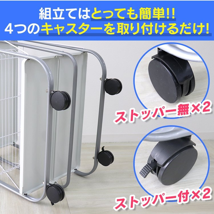 | 折りたためるキャスター付きのキッチンワゴン。 組み立てはとっても簡単!4つのキャスターを取り付けるだけ! キッチン以外にも大活躍! 様々なシーンでご利用いただけます。 幅10cmなので、狭い隙間でも収納しやすく移動も楽々。 使わないときは狭い隙間にスッと入れて保管が可能。場所を取りません。 ●商品仕様 サイズ(約):高さ70cm×幅67cm×奥行43cm(設置時外寸) 高さ86cm×幅67cm×奥行10cm(折りたたみ時外寸) ●注意事項 組み立て(折りたたみ→設置)の際は、手を挟まないようにご注意ください。 |