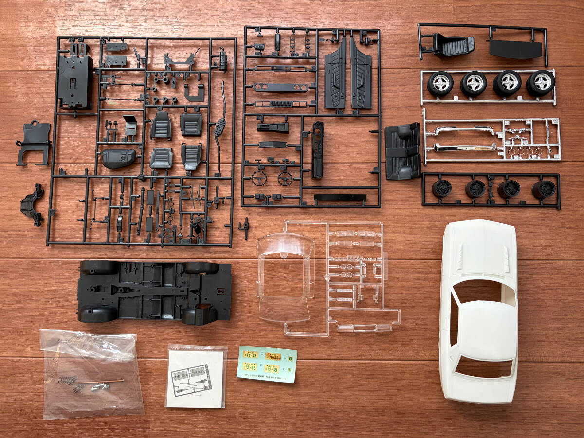 型から外れている部品があります。部品図の小袋のリベットが1本足りません。