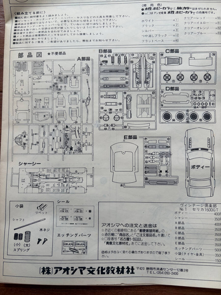 セリカ 1600GT ビンテージ倶楽部  未組み立て   送料450円〜  訳あり