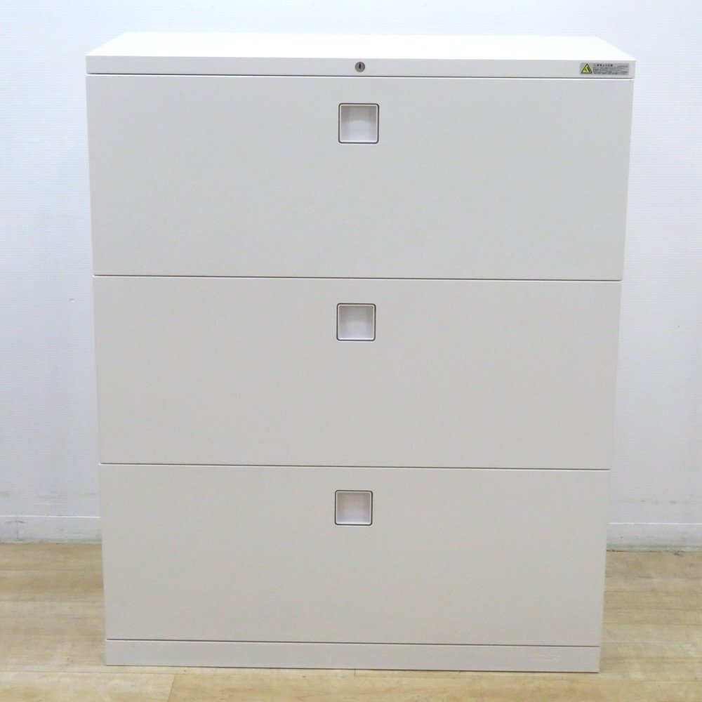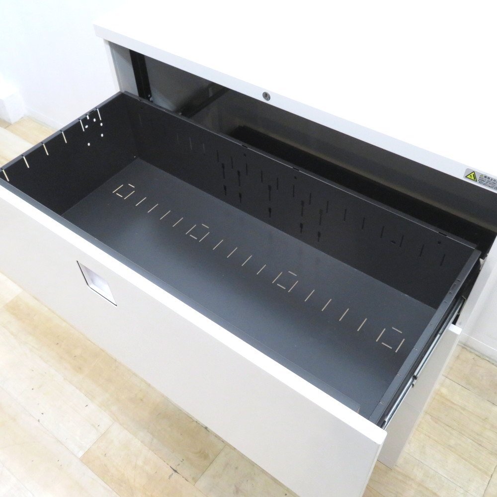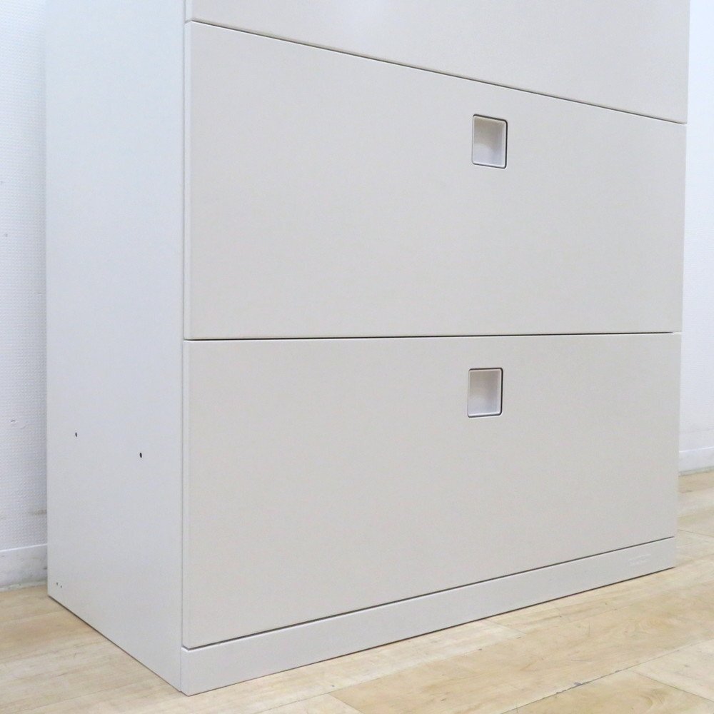 オカムラの人気シリーズ レクトラインの3段ラテラル書庫が入荷いたしました。 無駄を省いたシンプルなデザインが人気のレクトライン。 A4ファイルを立てて大量に収納できる引き出し式の3段書庫は書類保管に最適です。 ラッチ構造で災害時も引き出しが飛び出すことがなく、安心してお使いいただけます。 清涼感あふれるオールホワイトとレクトラインの象徴ともいえるマルチハンドル。 機能性とデザイン性を融合したまさに高機能オフィス収納庫です。 |