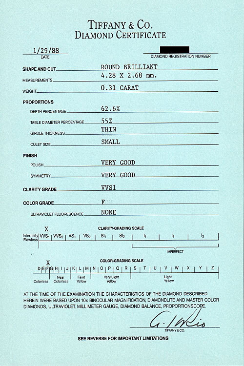 ティファニー ダイヤモンド ソリティア Pt950 TIFFANY&Co. 鑑定書 グレード付き 一粒石 6本爪 送料無料 中古 宝正 902090