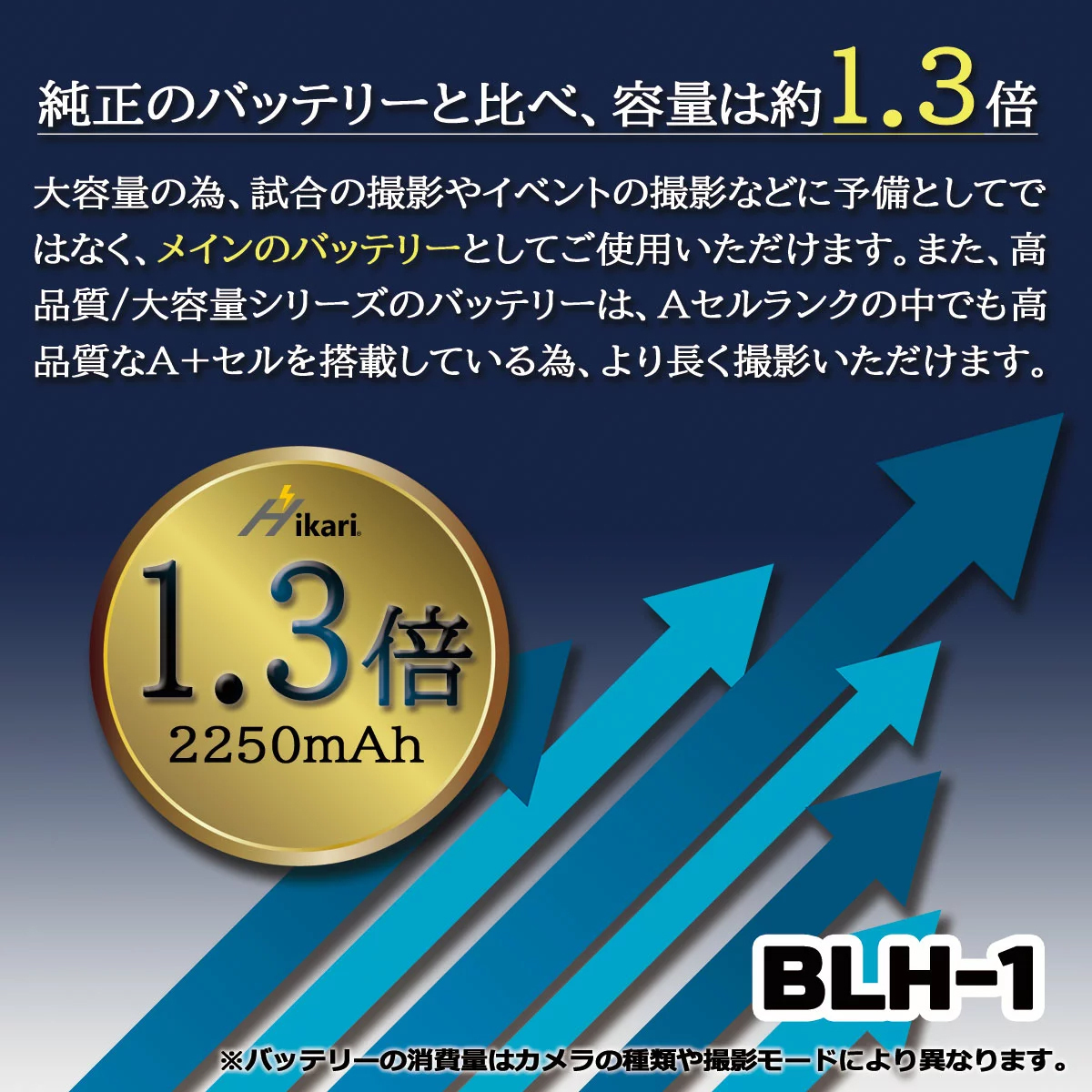 2個セット 純正品BLH-1よりも30%増の2250mAh大容量 オリンパス 互換 バッテリー BLH-1 OM-D E-M1 Mark II/OM-D E-M1X/OM-D E-M1 Mark III