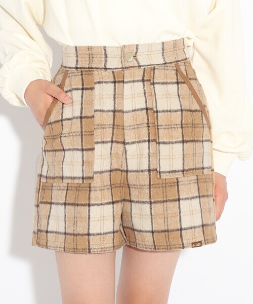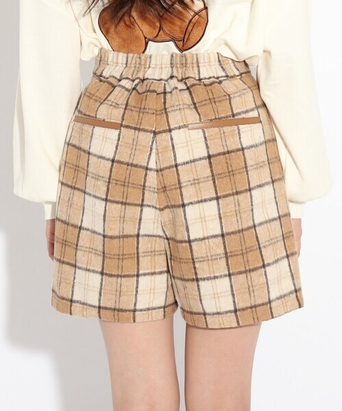 新品 PINK-latte【ニコラ掲載商品】あったかシャギーチェックキュロット ベージュ(252) 15(150cm) 定価4290円