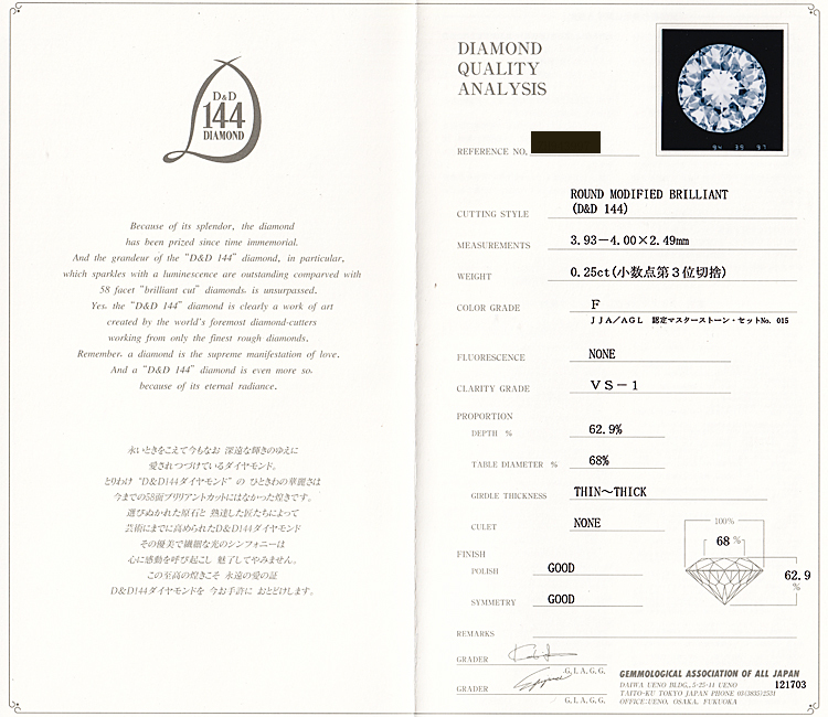ダイヤモンドグレードダイヤモンドのグレードについてはこちら