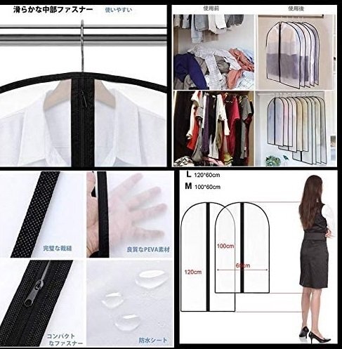 | 洋服衣類カバー 5枚組セット100×60cm ブラック |