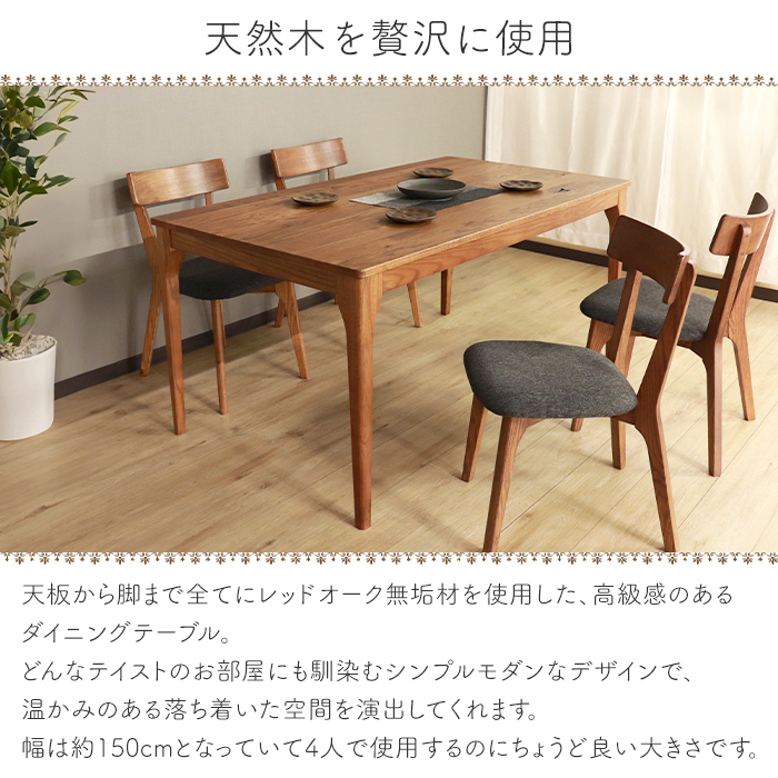 レッドオーク無垢材を使用した、シンプルモダンなダイニングテーブル。