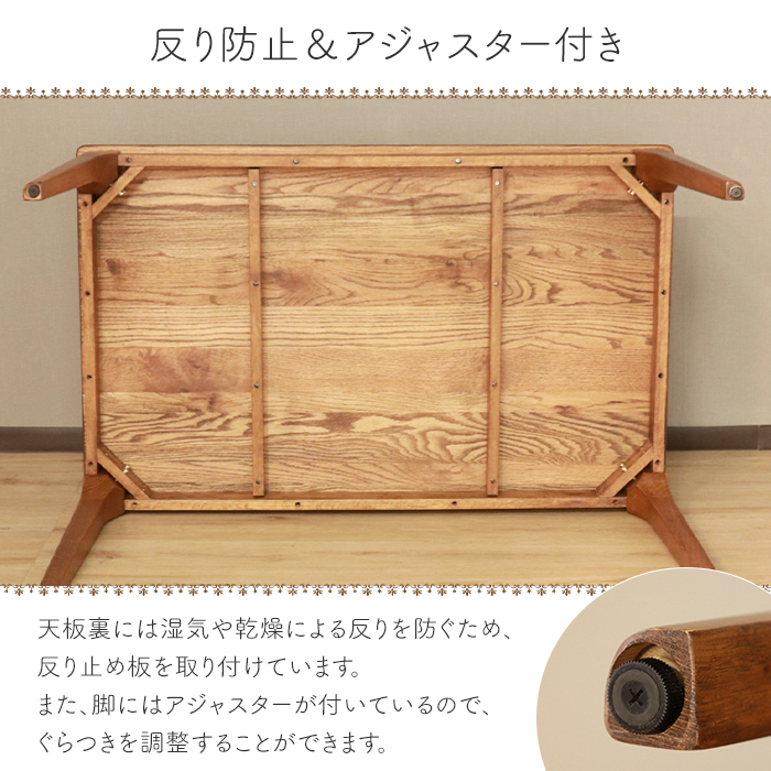 ダイニングテーブル 4人 ブラウン 天然木 無垢 木製 アジャスター ナチュラル MTISK-0131NA