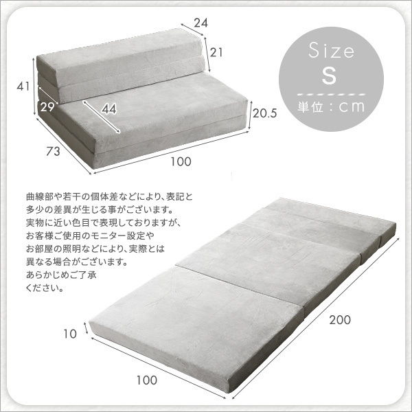 【カラー】 ブルー、ブラウン、グレー 【サイズ】 W100xD73~200xH10~41cm 【重量】 11kg 【素材】 側生地:ポリエステル 100% 中身:ウレタンフォーム 【梱包】 サイズ:34x37x55cm、重量:12kg 【その他】 カバー取り外し洗濯不可 【完成品】 圧縮梱包ですので開封 復元後ご使用いただけます。 【ご注意】 ・サイズ、重量は概算です。 ・商品カラーはご使用のモニターによって実際の明るさや色と異なって見える場合がございます。 |