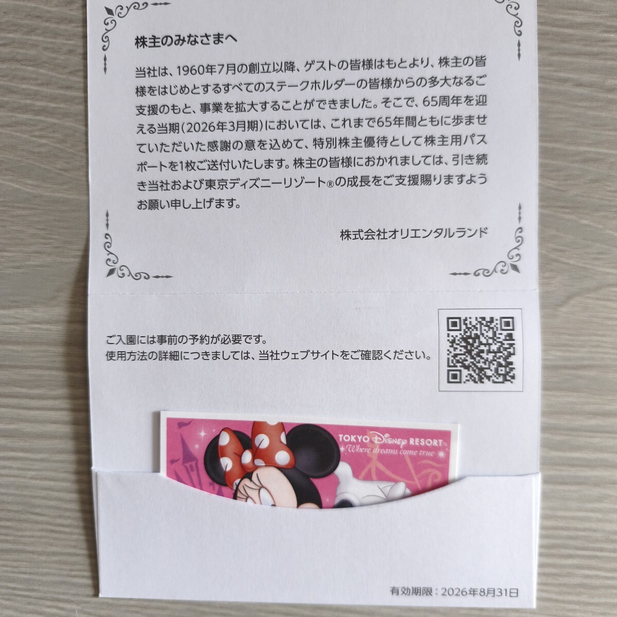 オリエンタルランド特別株主優待 1枚 東京ディズニーランド 東京ディズニーシー 東京ディズニーリゾート