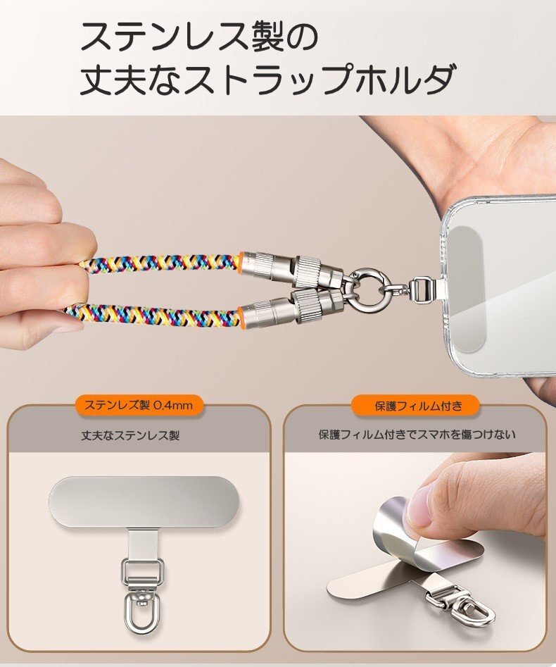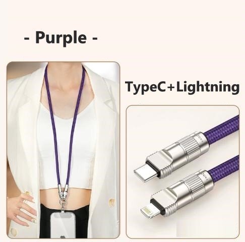 スマホネックストラップ パープル 90cm 充電ケーブル 2in1 TypeC + Lightning 充電コード