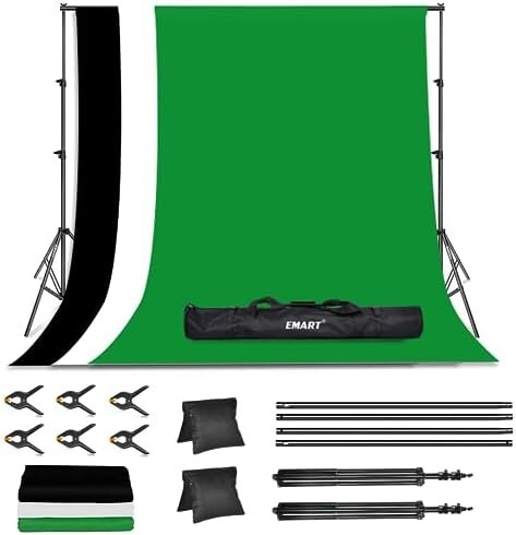 EMART 背景スタンド 200x300cm 背景スタンドセット 背景布白 黒 緑 背景180x280cm 撮影スタンド グリーンバックスタンド 背景布/背景紙に適用 組み立ては簡単 安定性がよい 写真スタジオ、ビデオ通信、クロマキー合成、誕生日、パーティーなどに適用 (強力クリップ、サンドバック、キャリーバッグ付き)