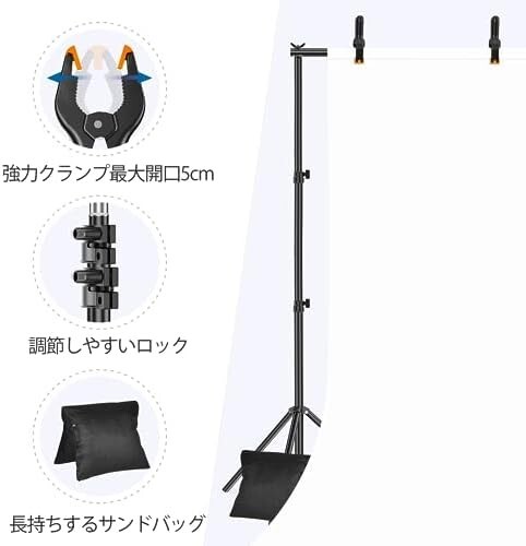 【豊かなアクセサリ】?強力クリップが背景布、背景紙、暗幕やクロマキースクリーンなどしっかりと背景布スタンドに固定され、脱落することが絶対に起こらりません。