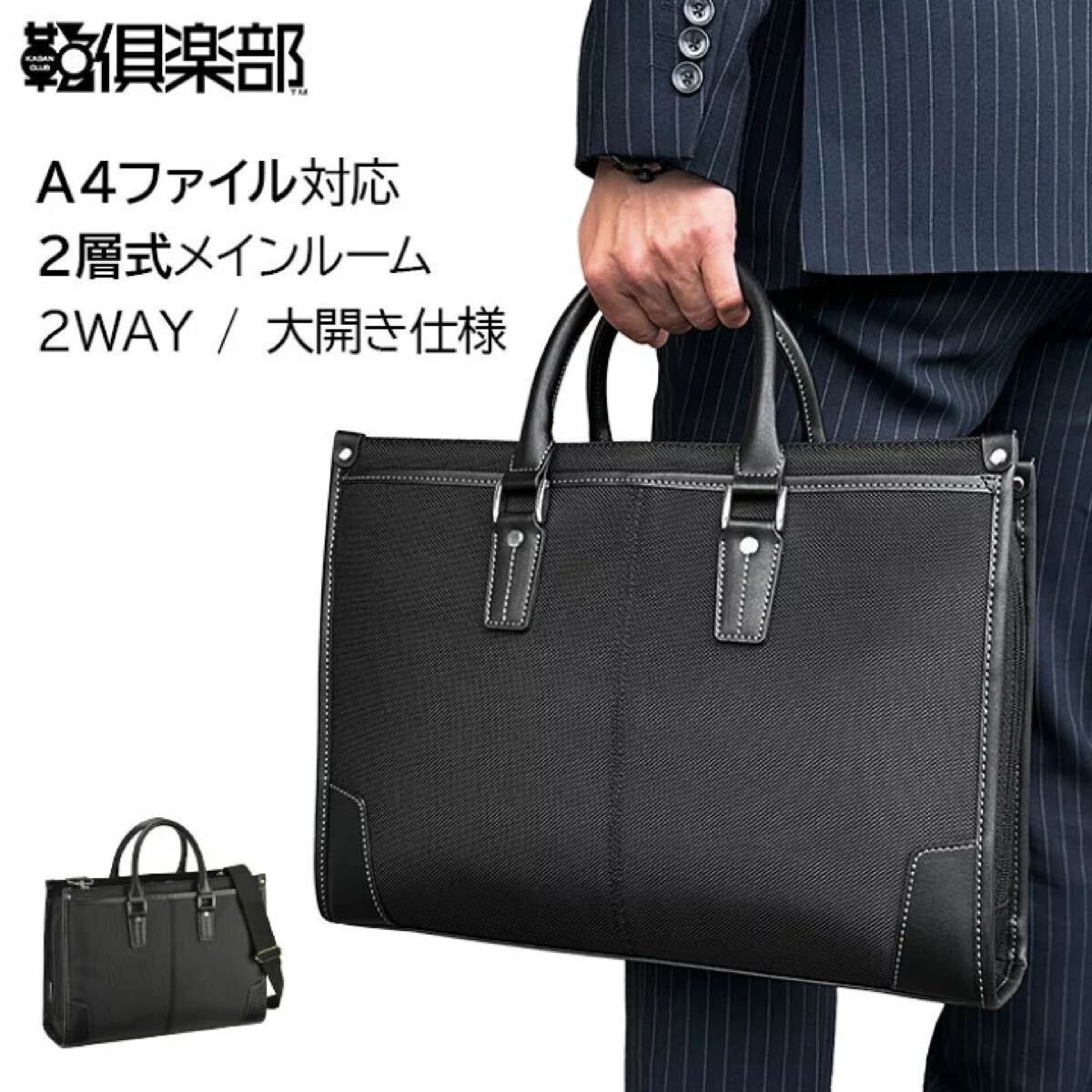 ビジネスバッグ メンズ 2層 大容量 A4ファイル 2WAY 大開き タブレット対応 ショルダーバッグ ブリーフケース 営業カバン 黒 横 横型 26723