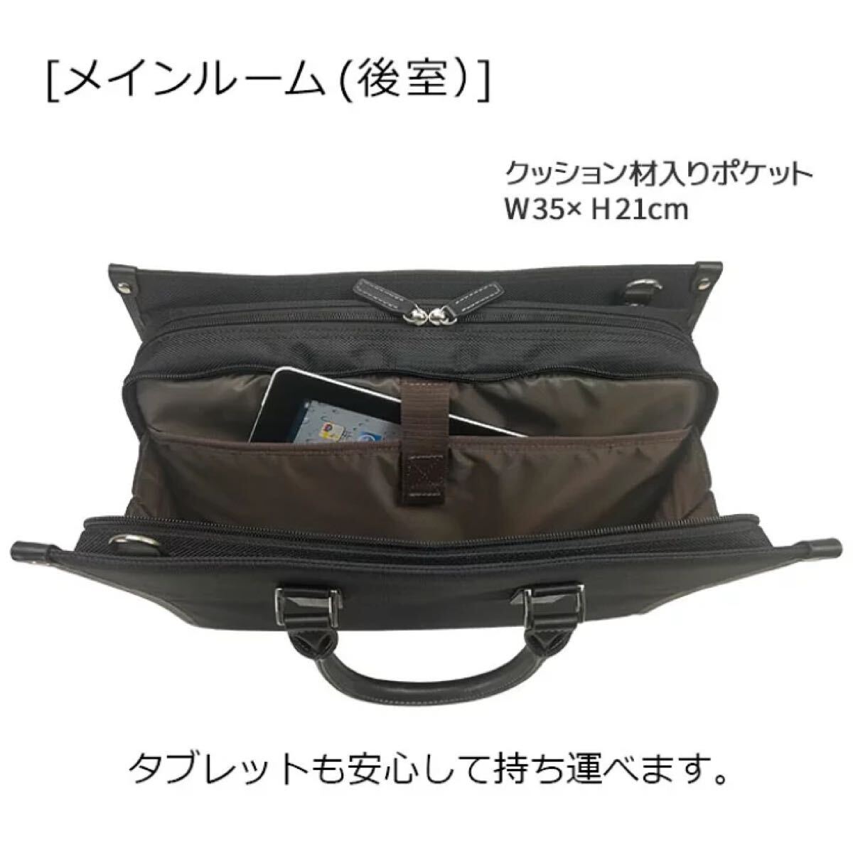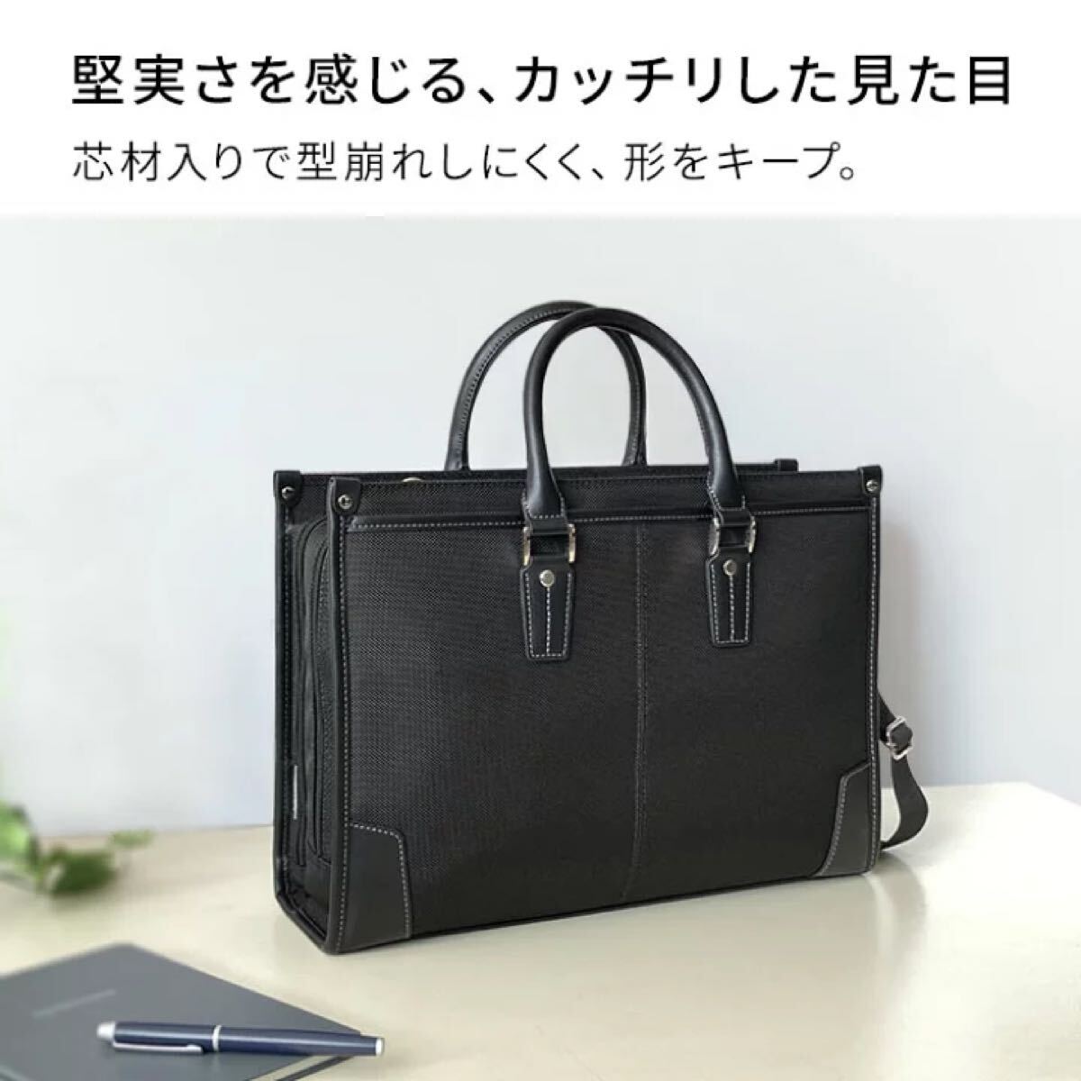◆ いつでもカチッとキメたいあなたに!しっかりした見た目が堅実さをイメージさせる、芯材入りのダブルルームビジネスバッグ。