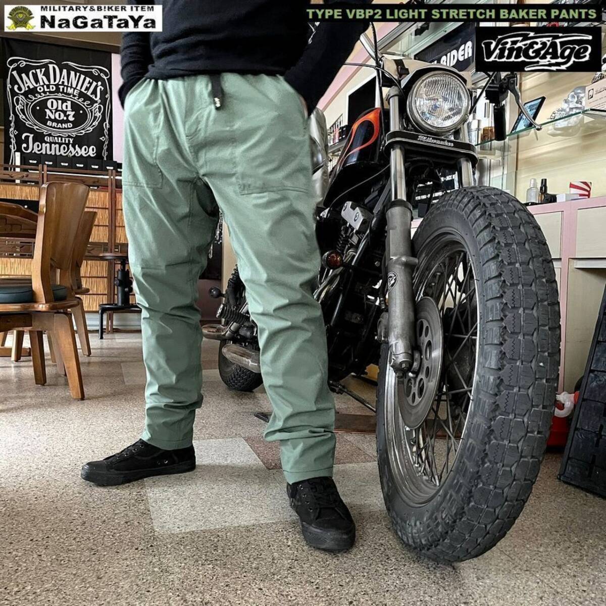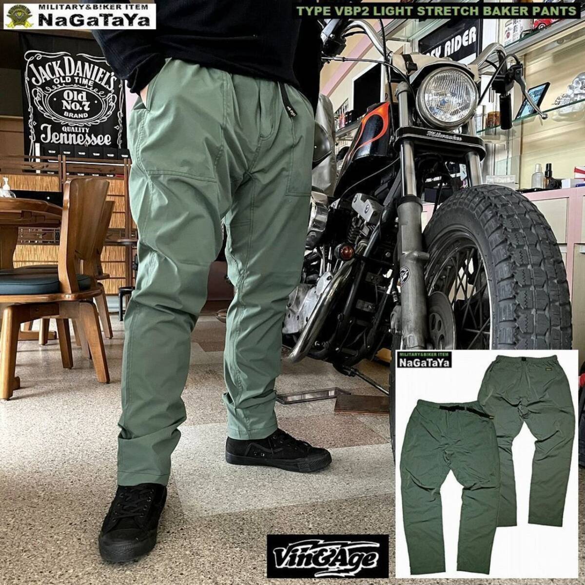 ★ Vin&Age ビンアンドエイジ TYPE VBP2 ライト ストレッチ ベイカーパンツ カーキグリーン モーターサイクル  ★