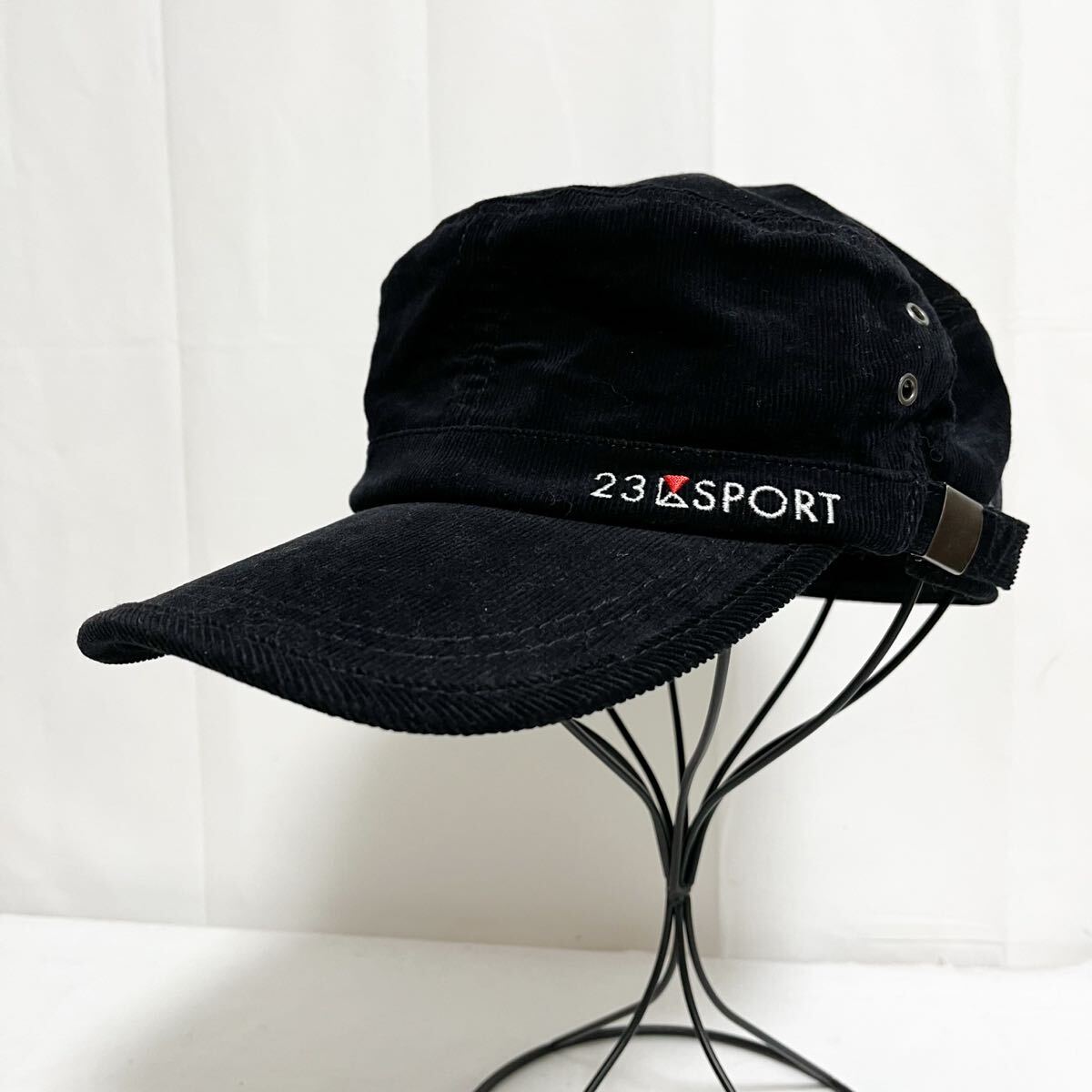 和706★ 23区 SPORT コーデュロイ ワークキャップ 帽子 ロゴ刺繍 F フリーサイズ ブラック メンズ