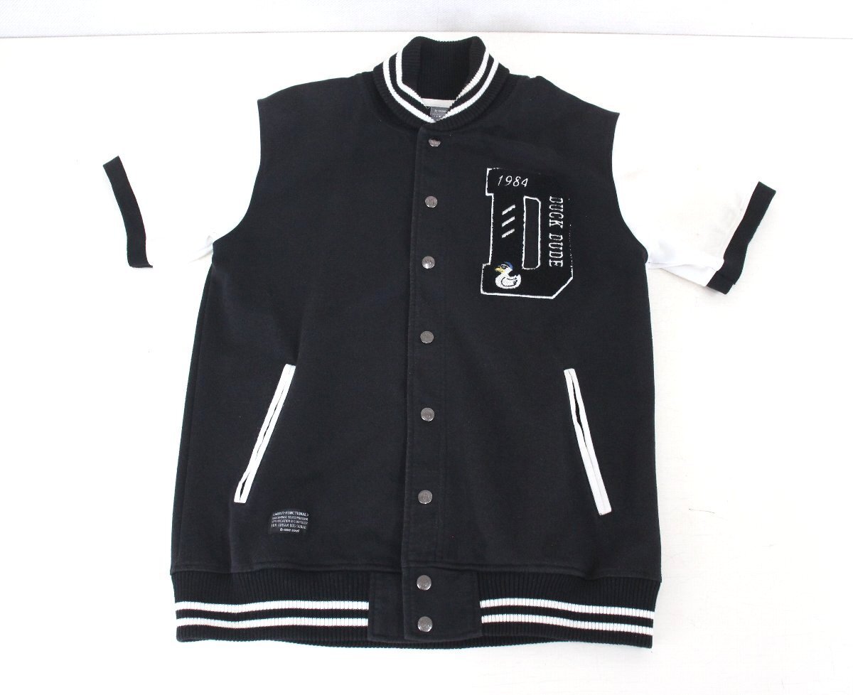 ku10■DUCK DUDE◆スタジャン◆LOS ANGELESコラボ◆XLサイズ◆メンズ◆半袖◆I-4570058◆B-ONE-SOUL◆ダックデュード◆古着◆シミ有り