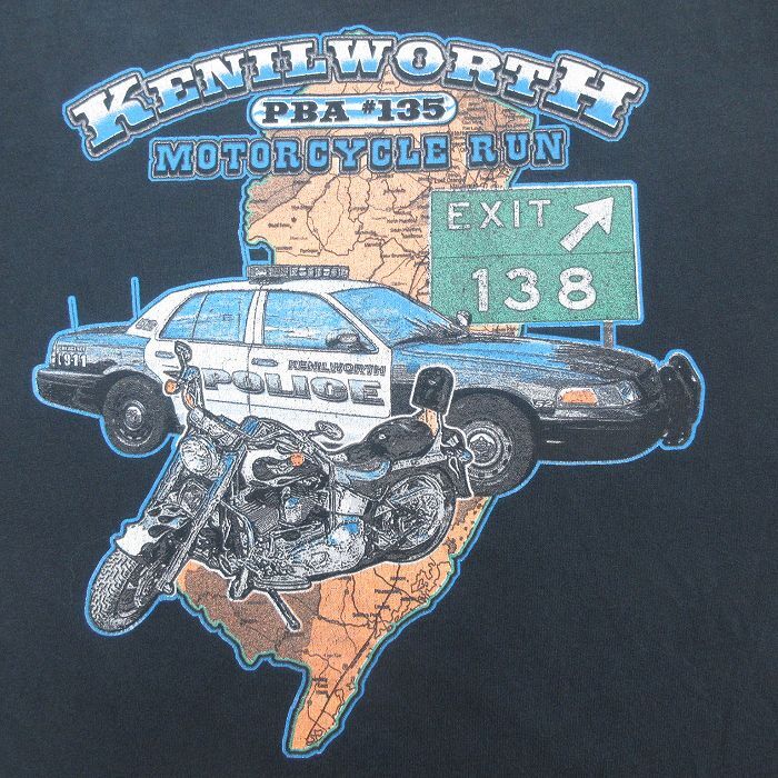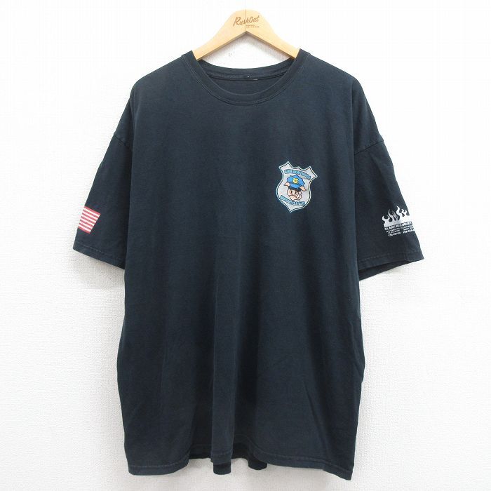 【商品名】 XL★古着 半袖 Tシャツ メンズ バイク パトカー 大きいサイズ クルーネック 黒