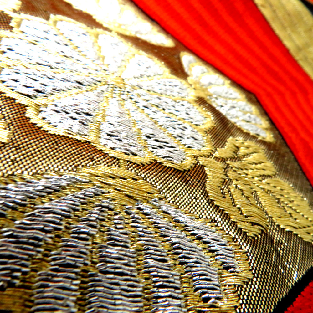 | 商品説明 | 結び練習用にいかがですか! 黒地に 金や銀・赤を用いて大きく配置された 亀甲や花の文様がインパクトのある袋帯です。 フォーマルシーンにご活用くださいませ。 または、帯リメイクで手芸を楽しむ方にも オススメです。 サイズ 長さ 約409.5cm 幅 約30cm ★画像はできるだけ実物に近いように撮影しておりますが、光の加減やお使いのブラウザ環境などにより見え方が違う場合があることを予めご理解の上ご購入をお願い致します。 | ||