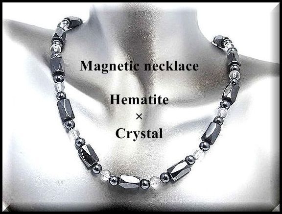 ◆魅惑的な輝きを放つ「ヘマタイト」と、全体運を上昇させる「水晶」の、お洒落な天然石磁気入りネックレスです。