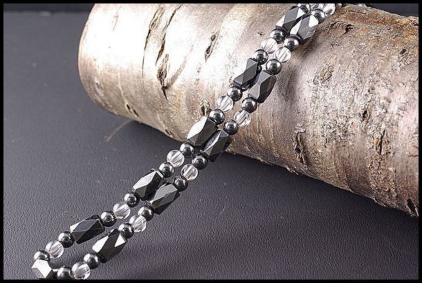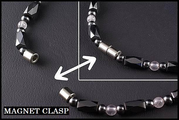=磁気ネックレス/[ヘマタイト×水晶]/ブラックグレイ×クリア
