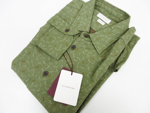 未使用 【グランシャツ GLANSHIRT】 5XGA00 G6683 700 定価42900円 トンボ×織柄 長袖シャツ (メンズ) size40 グリーン系 ◇10GRS206◇