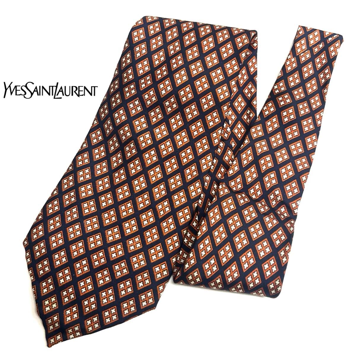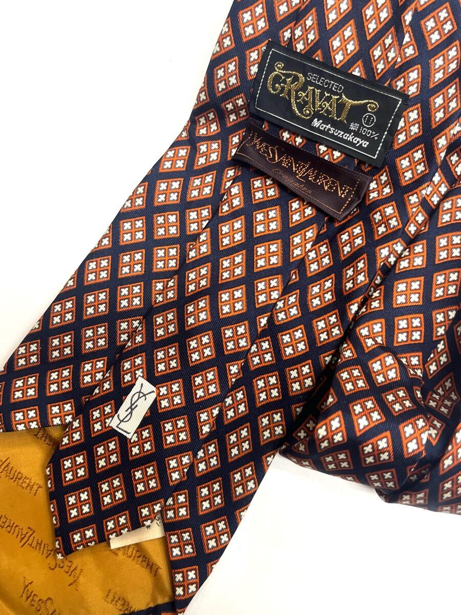 Yves Saint Laurent★イブサンローラン★RAVAT 松坂屋 Matsuzakaya 絹 シルク100% ネクタイ YSL/濃紺ベース色系