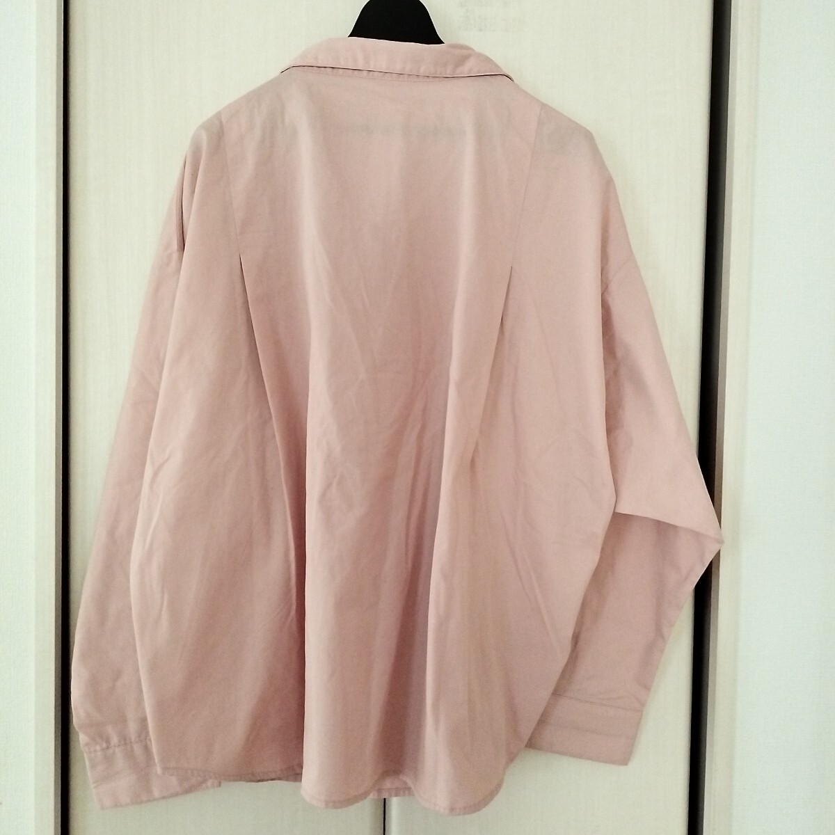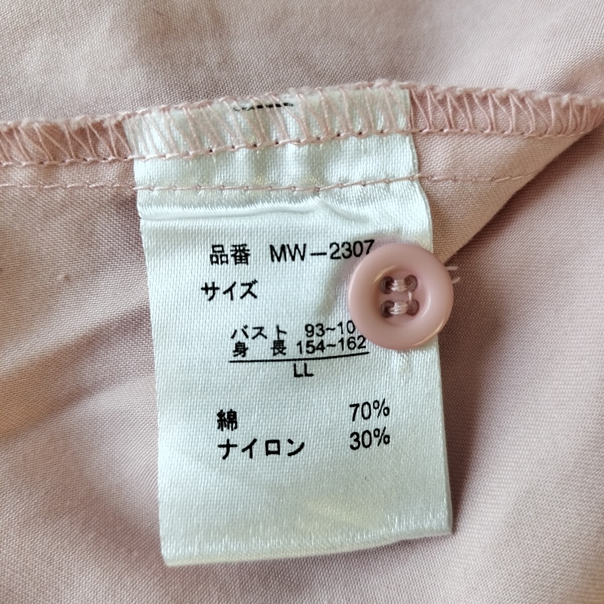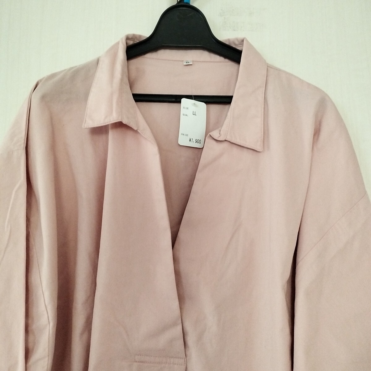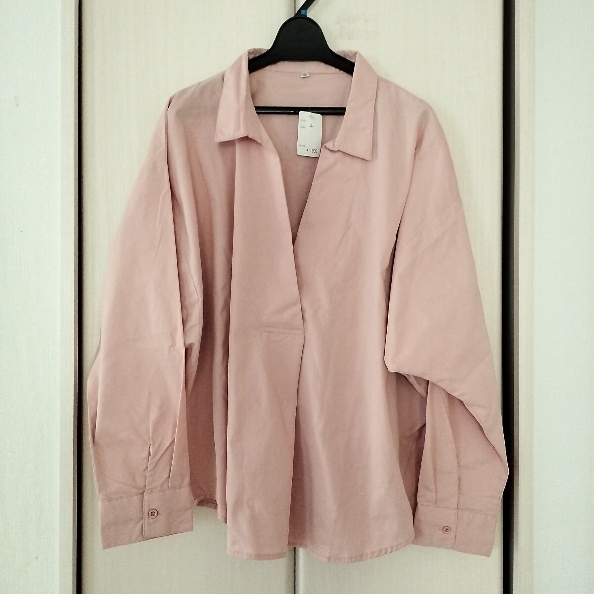 新品タグ付き【LLサイズ】レディース ブラウス シャツ 長袖 ピンク Vネック スキッパーシャツ ミセス 綿&ナイロン ゆったり NW-2307