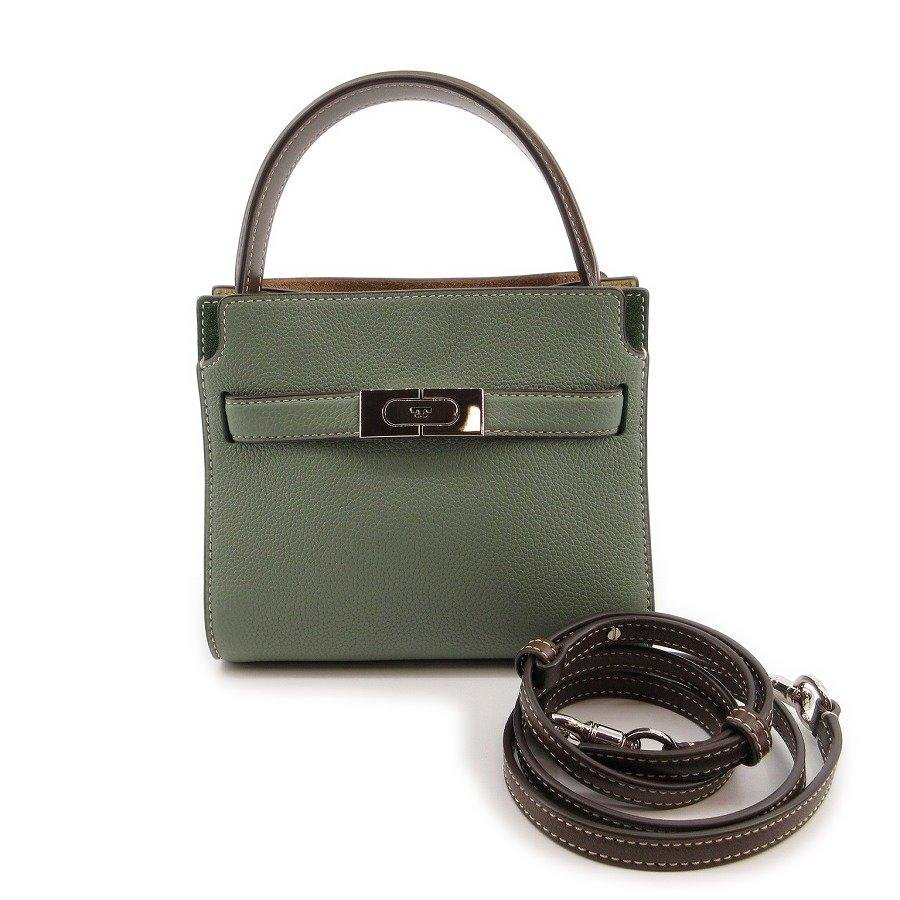 ・送料無料 超美品 トリーバーチ TORYBURCH ハンドバッグ ショルダーバッグ 鞄 手提げ 斜め掛け 2way リー ラジウィル LEE RADZIWILL プチ ダブルバッグ レザー 本革 緑 グリーン系 レディース