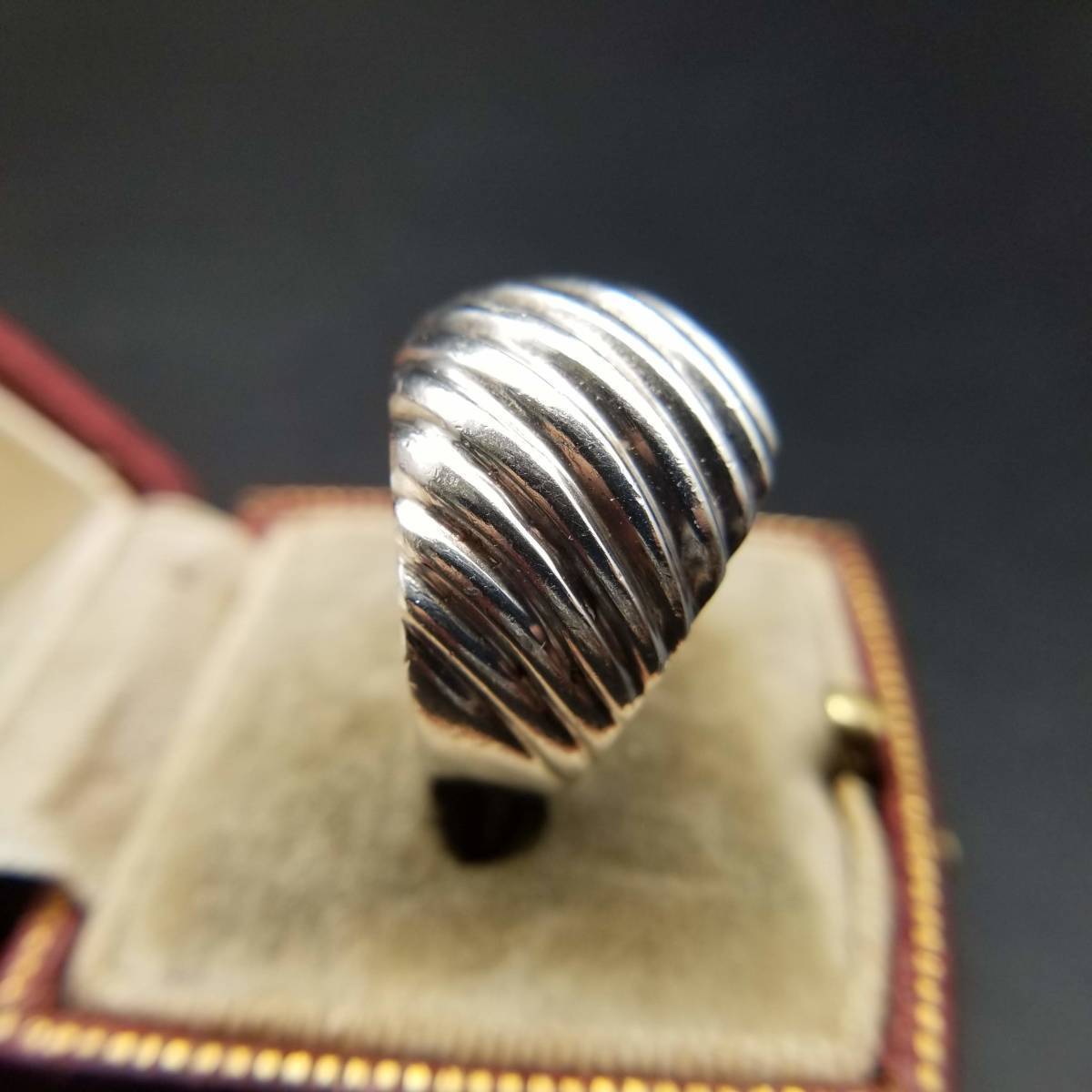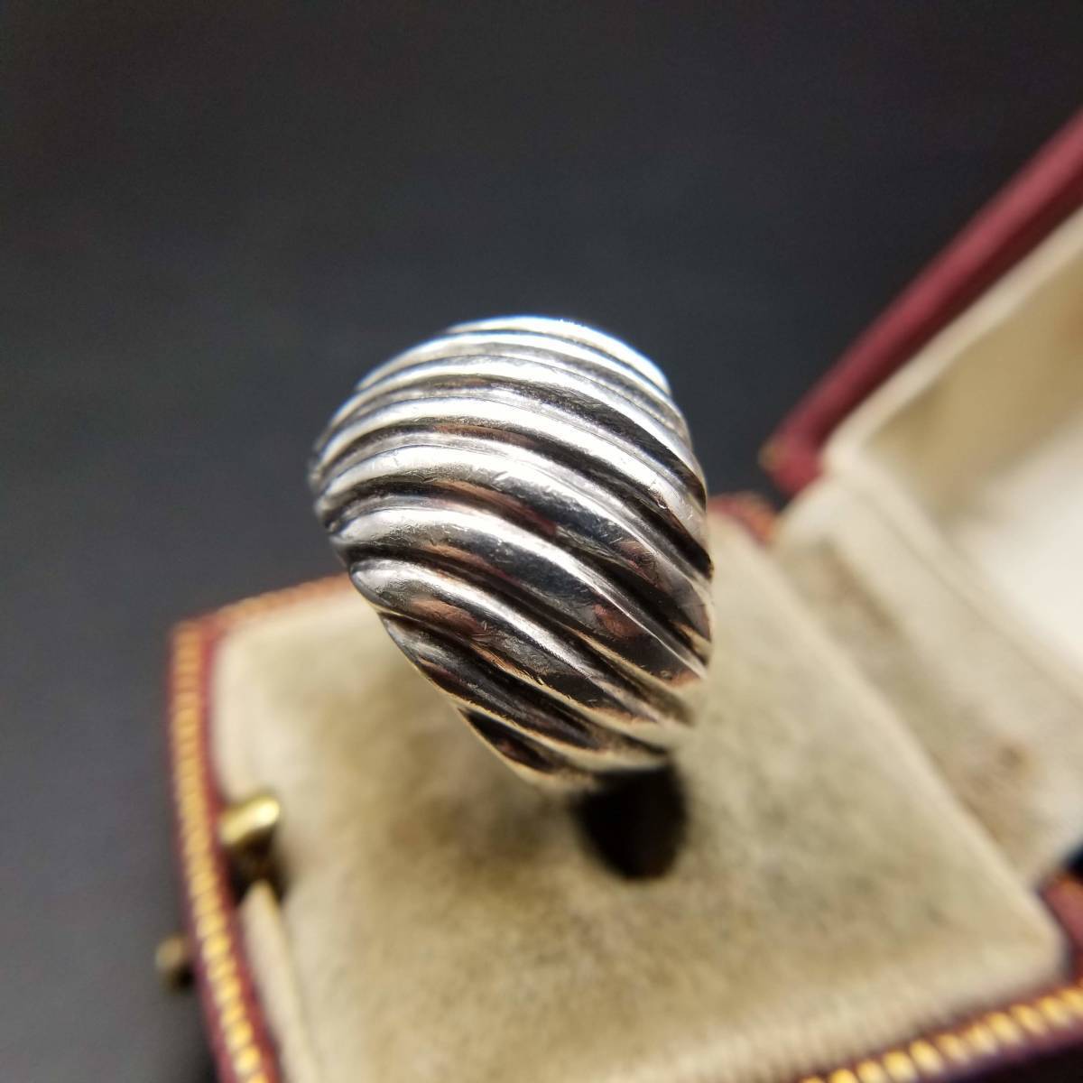 フルーテッドストライプ 925 シルバー ヴィンテージ ドーム リング 指輪 銀 ボリューム感 ユニセックス YGH