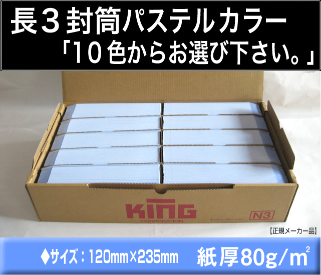 長3封筒《紙厚80g/m2 パステルカラー封筒 選べる10色 長形3号》1000枚 長型3号 A4 三つ折り ハイソフトカラー ハーフトーンカラー キング