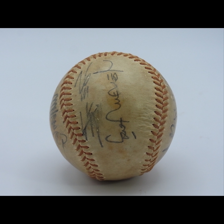 | 商品詳細 | 商品管理番号:370-2 y070903a 阪神タイガース 球団ロゴ 村山実 本屋敷錦吾 吉田義男 山内一弘 権藤正利 石川緑 遠井吾郎 並木輝男 直筆サインボール 1965年 60年前 1965年3月14日 岡山県営球場 阪神対西鉄 阪神が11-5で西鉄に勝利 その時に頂いた直筆サインボールです。 自宅に保管していました。 ・阪神タイガース公式ロゴ入りボール ・村山実 本屋敷錦吾 吉田義男 山内一弘 権藤正利 石川緑 遠井吾郎 並木輝男 本人の直筆サイン 【商品状態】 何分にも60年前のボールであり、劣化も多少なりともあります。 状態は画像のとおり汚れ、キズ、スレ、傷み等あります。 詳しい状態は写真にてご確認ください。 ノークレーム・ノーリターンでお願い致します。 ※必ず各画像、説明を御確認の上ご理解いただける方のご入札をお願いいたします。 |