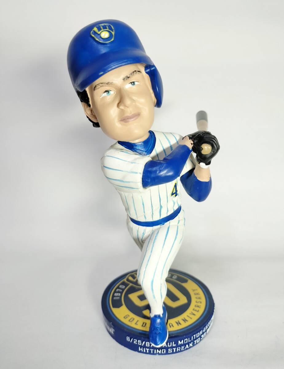 ・ブルワーズの球団創立50周年を記念してつくられたボブルヘッドで、1987年8月25日、ブルワーズ球団記録となる39試合連続安打を記録したモリターの雄姿を再現したボブルヘッドとなります。