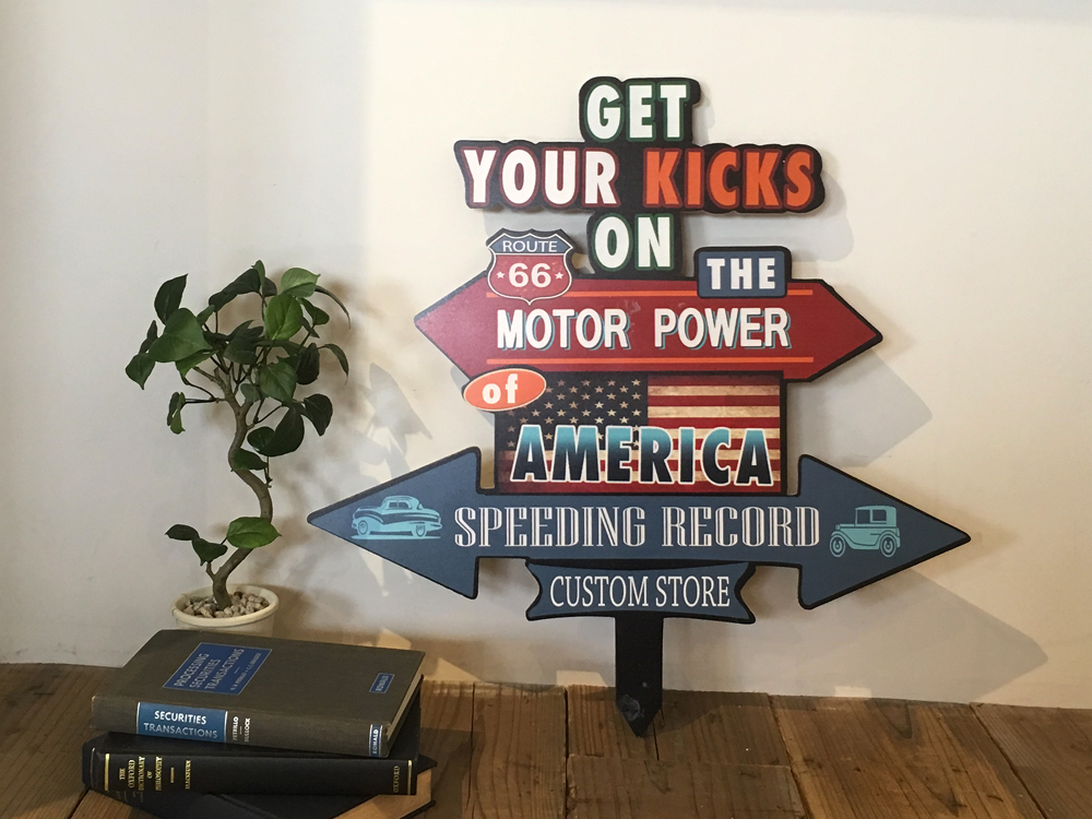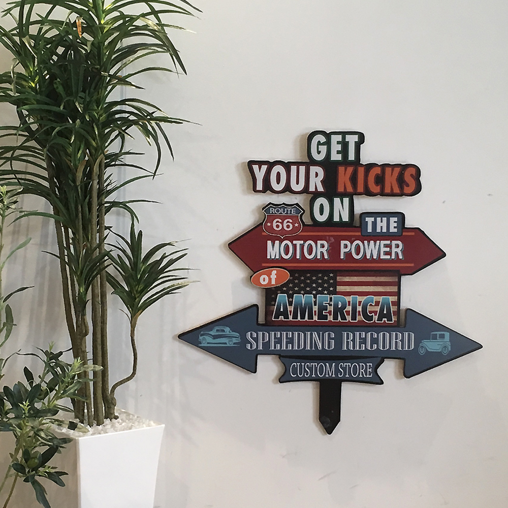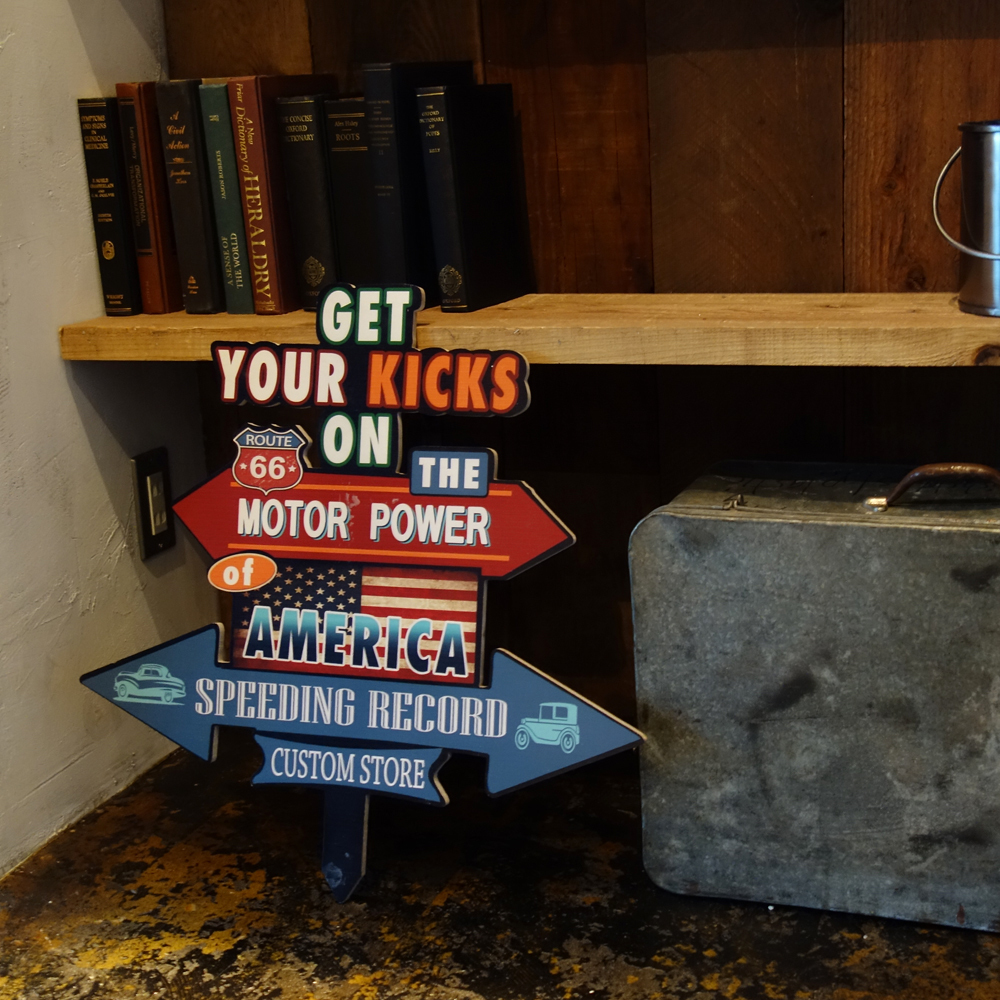 アンティーク調の看板です。 複数のパネルで構成され、開拓時代のアメリカを髣髴させるこのデザインは案内標識をモチーフにしています。レトロポップでダイナー風の部屋作りにはもってこいのアイテムです。