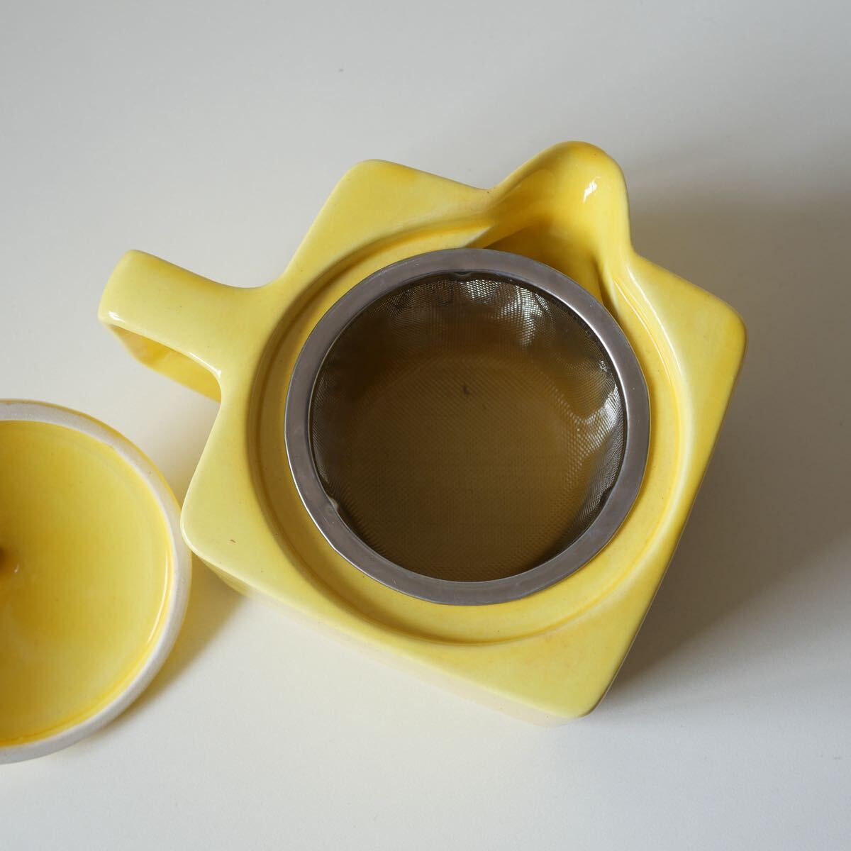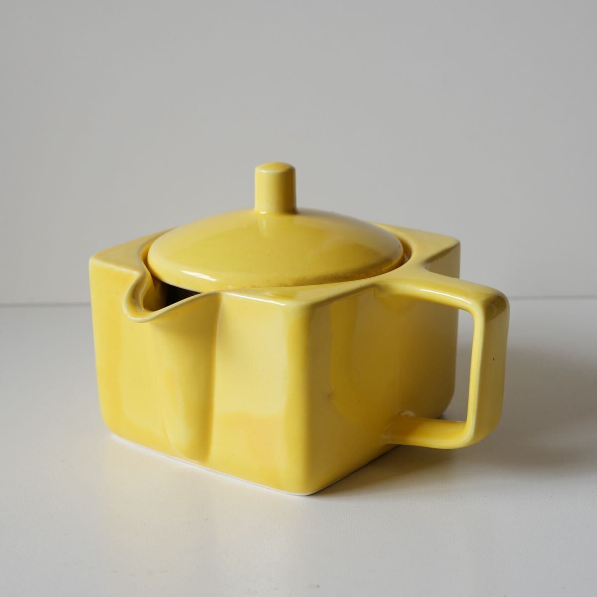 形の可愛い四角急須です。とても軽いです。未使用品と思われますが汚れなどあります。NC,NRでお願いします。写真と同等のお品になり釉薬ののり具合等が異なる場合があります。