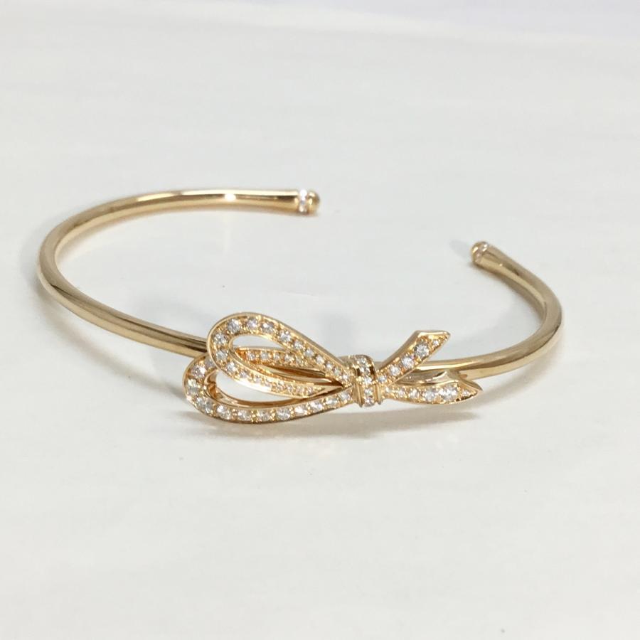 送料無料 中古A ティファニー バングル Tiffany & Co. T&Co ボウ リボン ダイヤモンド K18PG 750ピンクゴールド 箱付 ブレス 146651