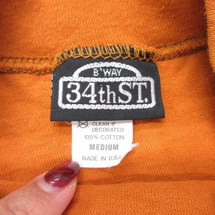 【商品名】 XL★古着 長袖 ビンテージ Tシャツ メンズ 90年代 90s 無地 コットン モックネック ハイネック USA製 オレンジ