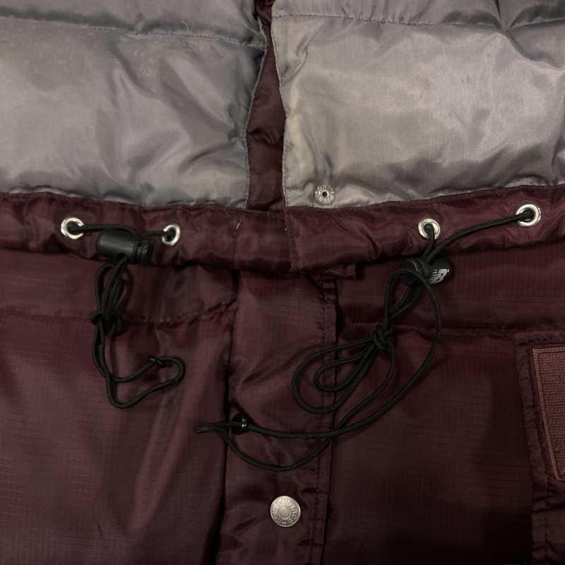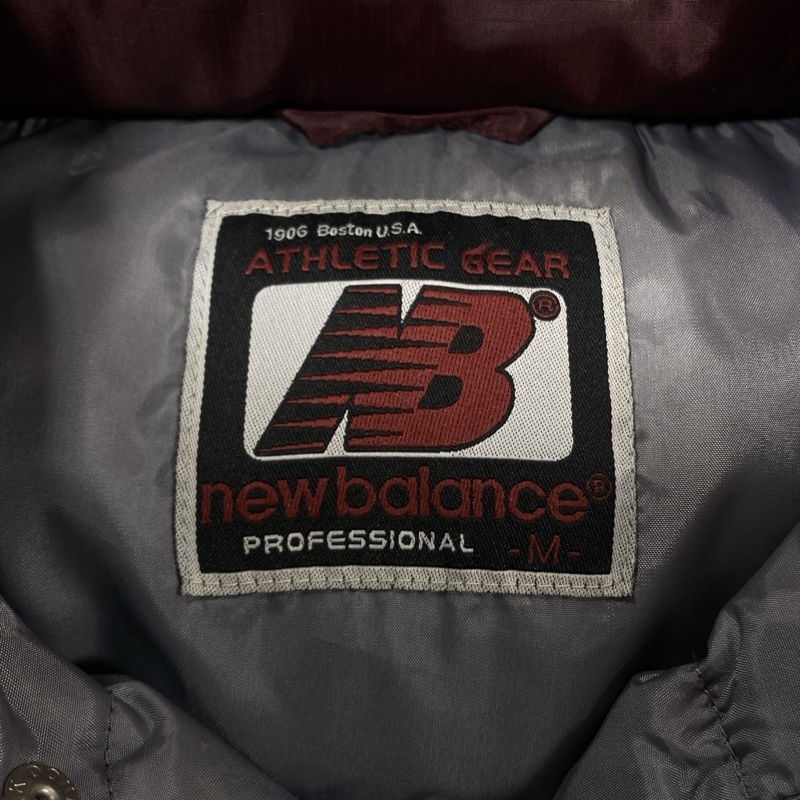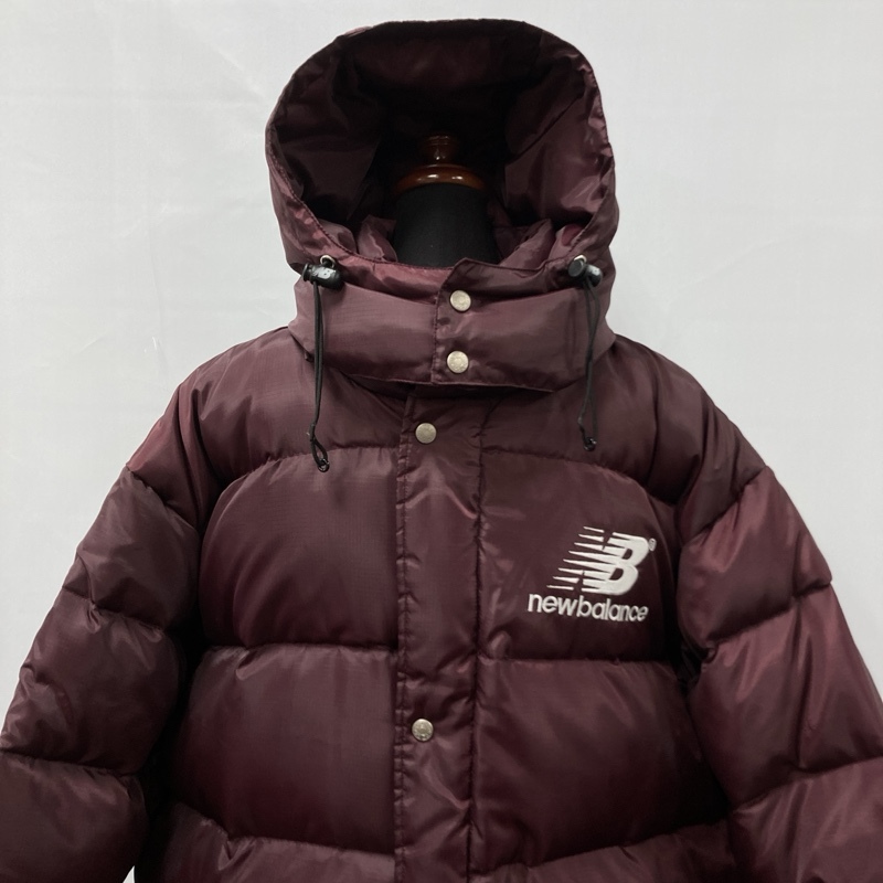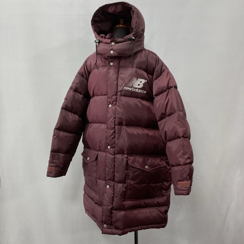 New Balance/ニューバランス/90s~00s/胸ロゴ刺繍/フーデッドダウンベンチコート/ロングコート/ロングジャケット/バーガンディ系/肉厚