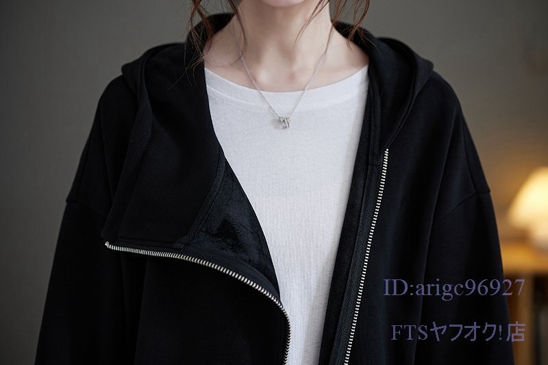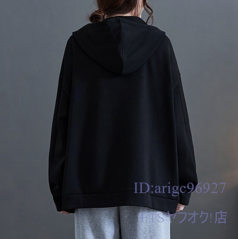 A2617☆新品カジュアル オシャレ ゆったり大きいサイズ 無地 パーカー フードつき カーディガン コート 黒 M~XXL