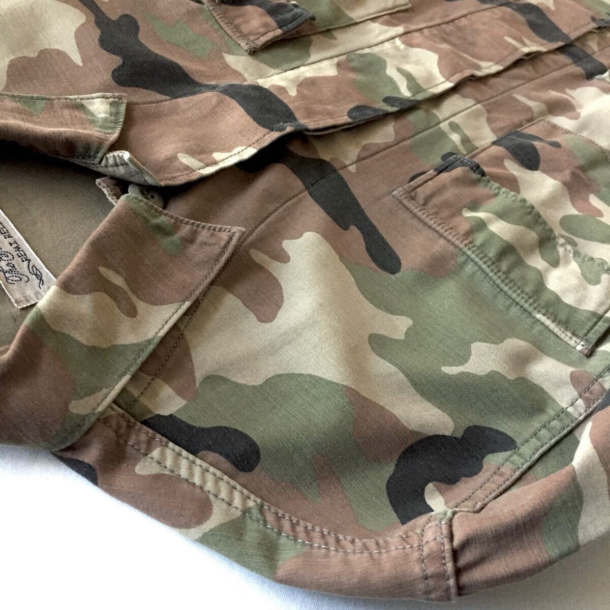 ビームス+がレミレリーフに別注したBDUシャツジャケット(ウッドランドカモ)です。