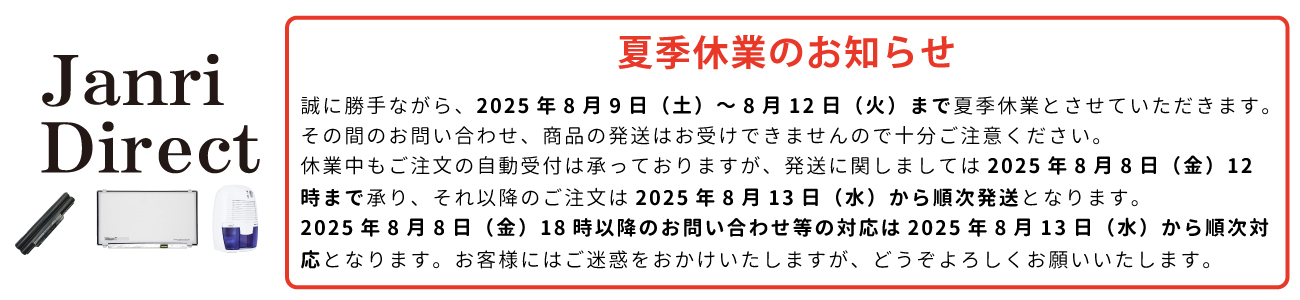 JANRI株式会社 埼玉県熊谷市本町2丁目78 ウノキビル3階 電話番号:048-594-9118 ※ご購入商品に関するお問い合わせの際は、お手元に「取引番号」をご用意ください。 お客様の購入情報等の確認をさせて頂いた後、各種対応を受け賜わります。 URL:https://janri.jp 営業時間 平日:9:00~18:00 定休日:土曜日、日曜日 1、年末年始、ゴールデンウィーク、お盆休み等の大型連休中は休業とさせて頂きます。 なお休業期間につきましては事前に弊社ページ上にてお知らせいたします。 2、営業時間外のお問い合わせに付きましては、お答え出来かねる場合がございます。予めご了承ください。 |
