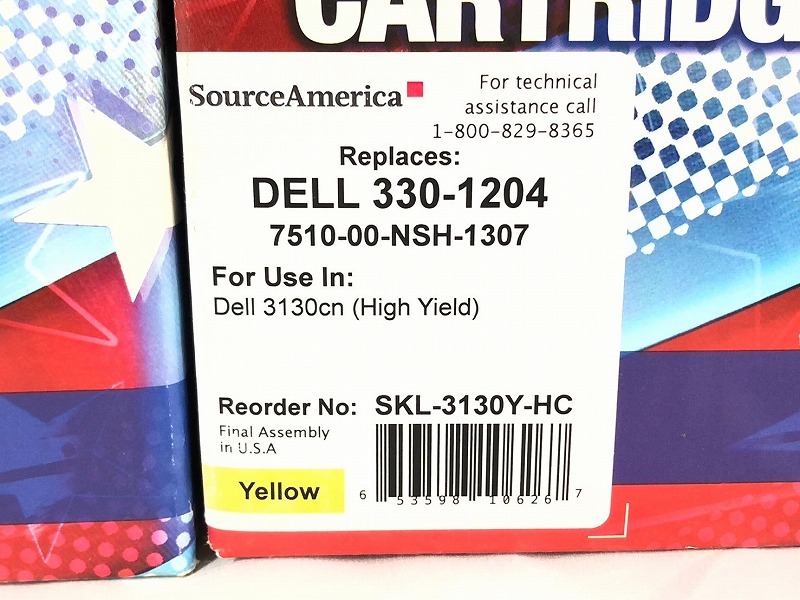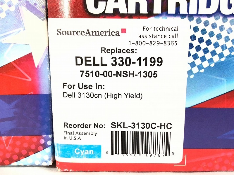 #【米軍放出品】未使用品 再生トナーカートリッジ DELL カラーレーザープリンタ 3130cn 4色セット(CMYK 各1個)リサイクル(100)BA8FK-W#25