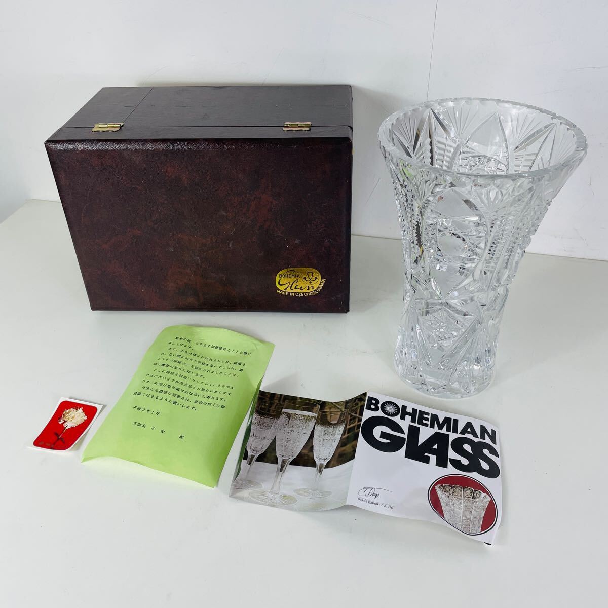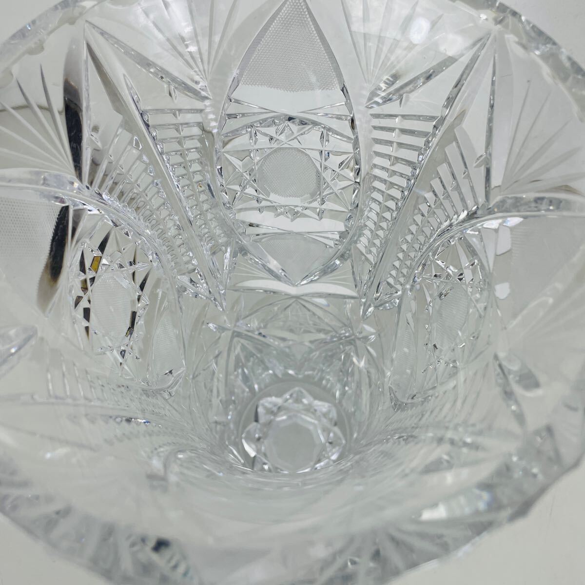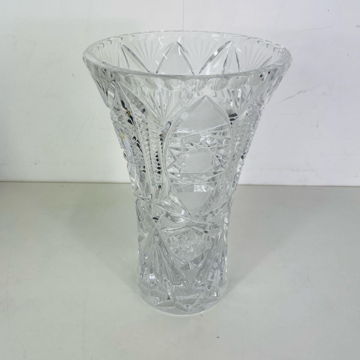 こちらはボヘミアガラス(BOHEMIA GLASS)のクリスタルガラス製フラワーベース(花瓶)です。チェコスロバキア時代の高級ガラス工芸品で、繊細なカットが施された煌びやかなデザインが魅力です。