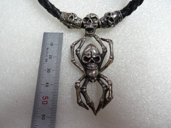 Bu-Been ネックレス クモ ドクロ 革 シルバー925 スカル 総重量:約76g 長さ約55cm