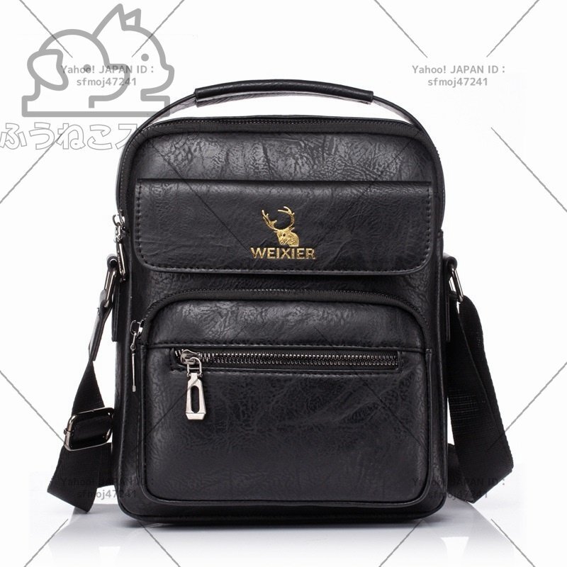 ショルダーバッグ メンズ 大容量 斜めがけ メッセンジャーバッグ レザー 収納 手提げ式バッグ 多機能 通勤 出張 就職活動 ブラック