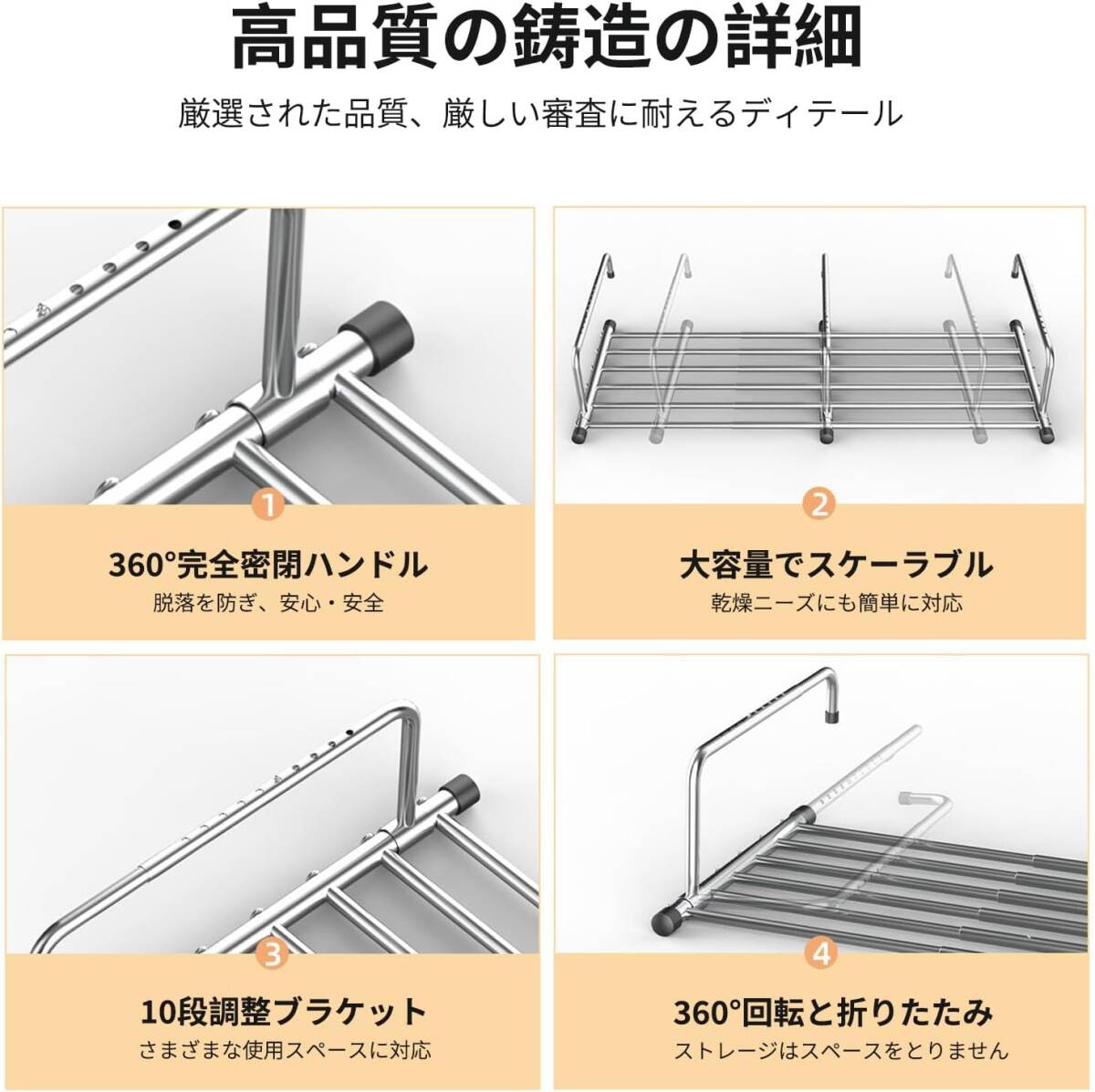 • 【高品質のステンレス鋼素材】物干しラックはステンレス製で、耐傷性、耐高温性、優れた仕上がり、耐久性、防水性、防錆性、変形のない安定した構造、強力な耐荷重能力。