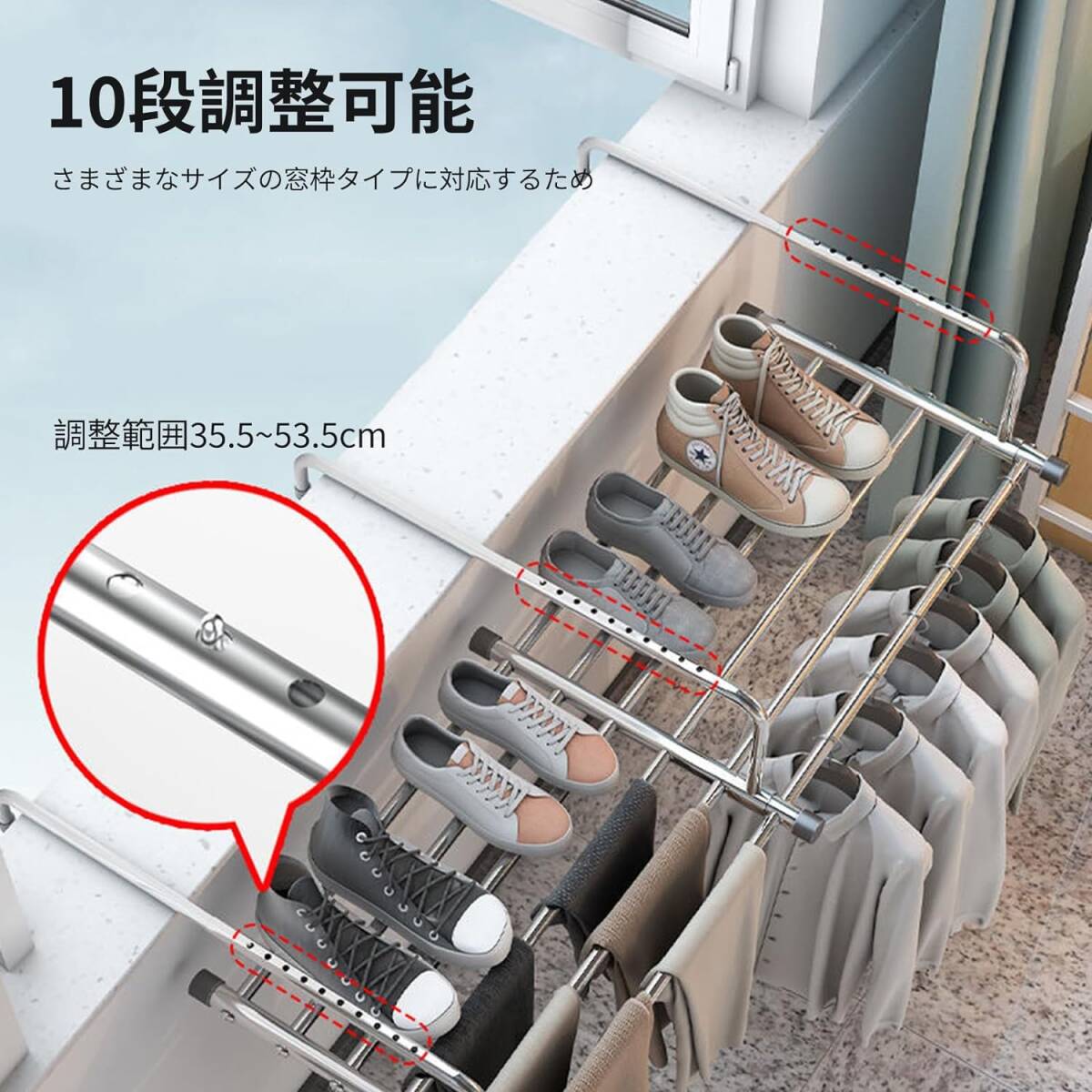• 【伸縮可能】6本の物干し竿は二重ケースになっており、必要に応じていつでも自由に伸縮し、物干し面積を増やすことができます。乾燥範囲は78~140cm。衣類や靴、タオル、バスタオル、スカーフ、靴、その他の小物の乾燥に使用でき。より便利になります。